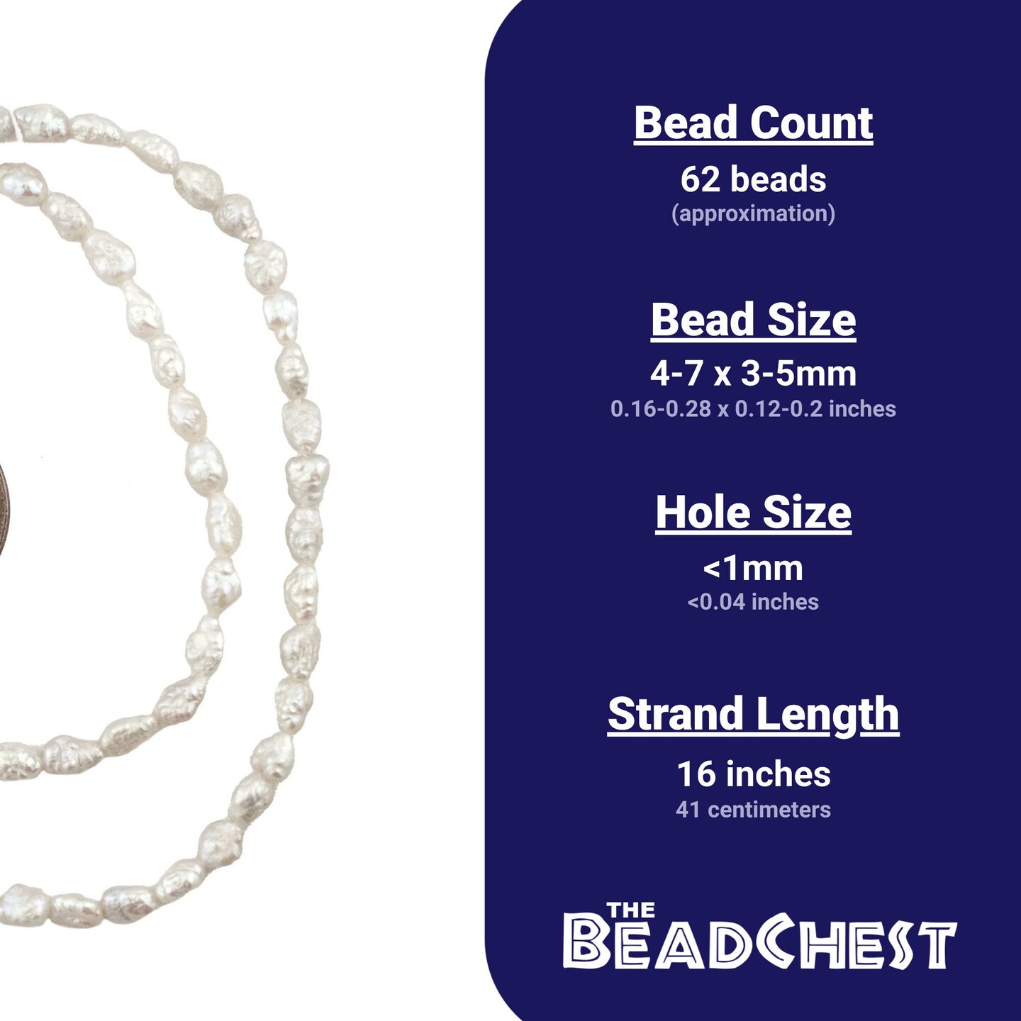 The Bead Chest Vintage Japanese Rice Pearl Beads: 3mm Lustrous Artisan Beads from Japan | Light Silver | Full Strand