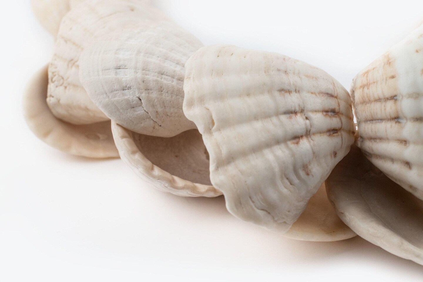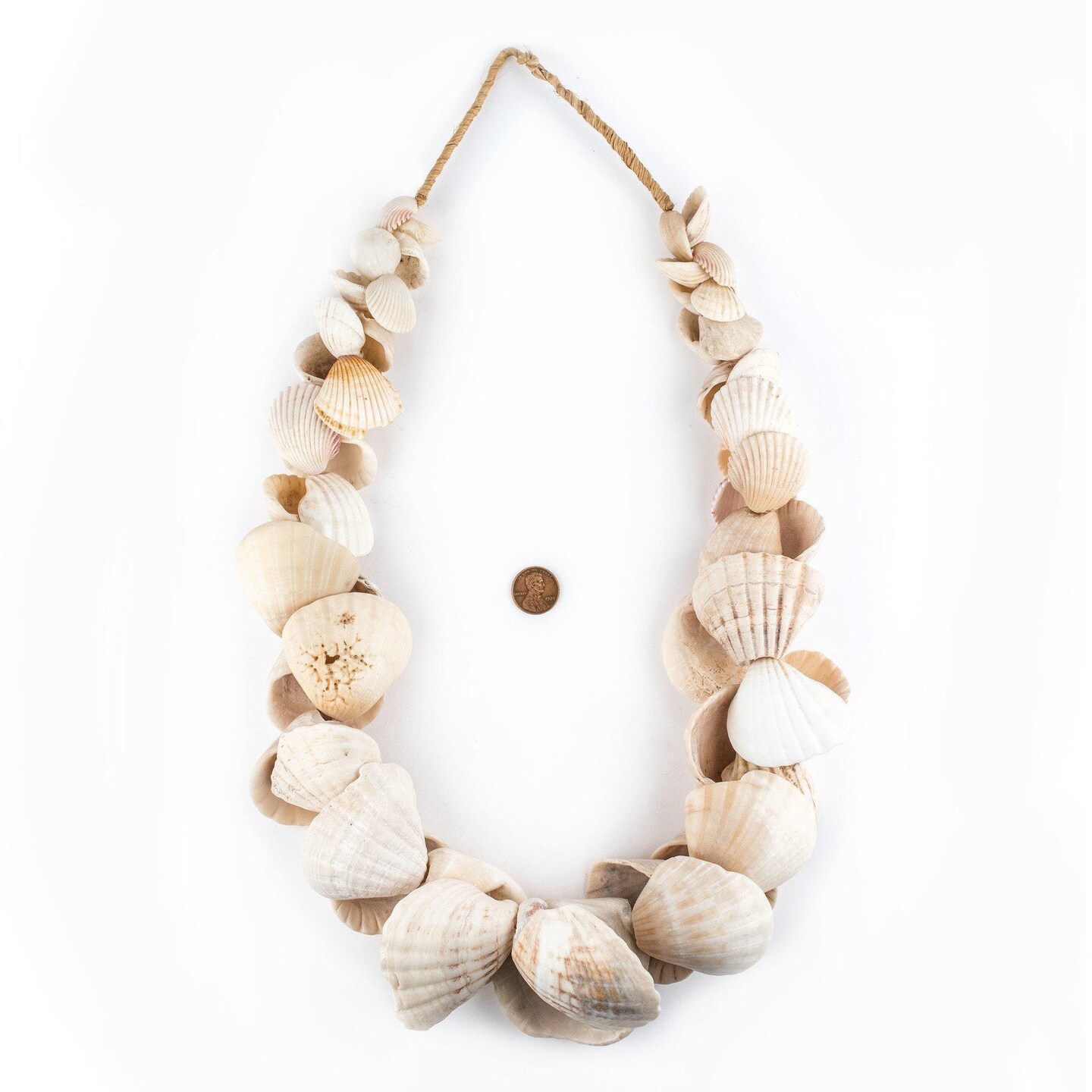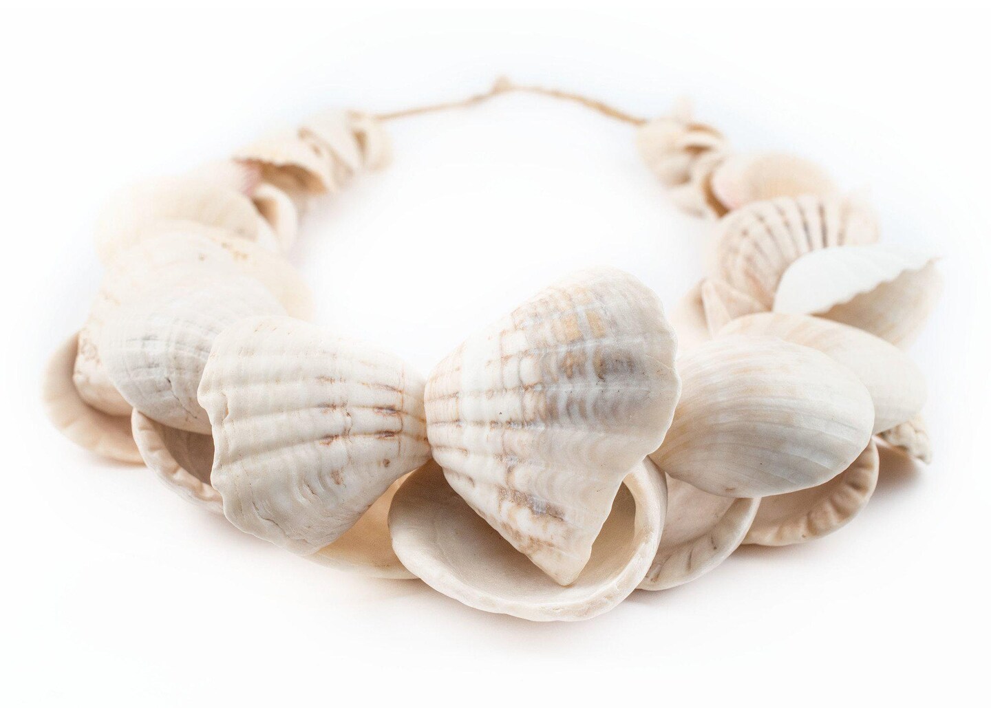 The Bead Chest West African Decorative Shell Beads 45mm Ghana White Unusual Large Hole 34 Inch Strand Handmade
