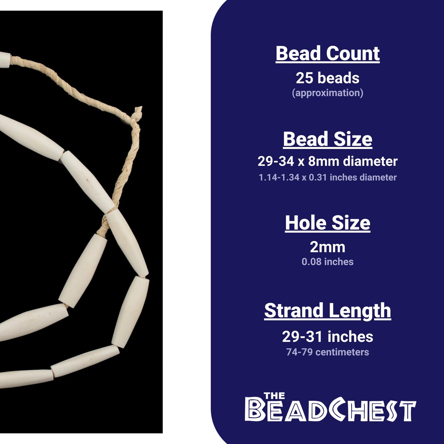 The Bead Chest White Bone Beads - Full Strand of Fair Trade African Beads (Tube, White)
