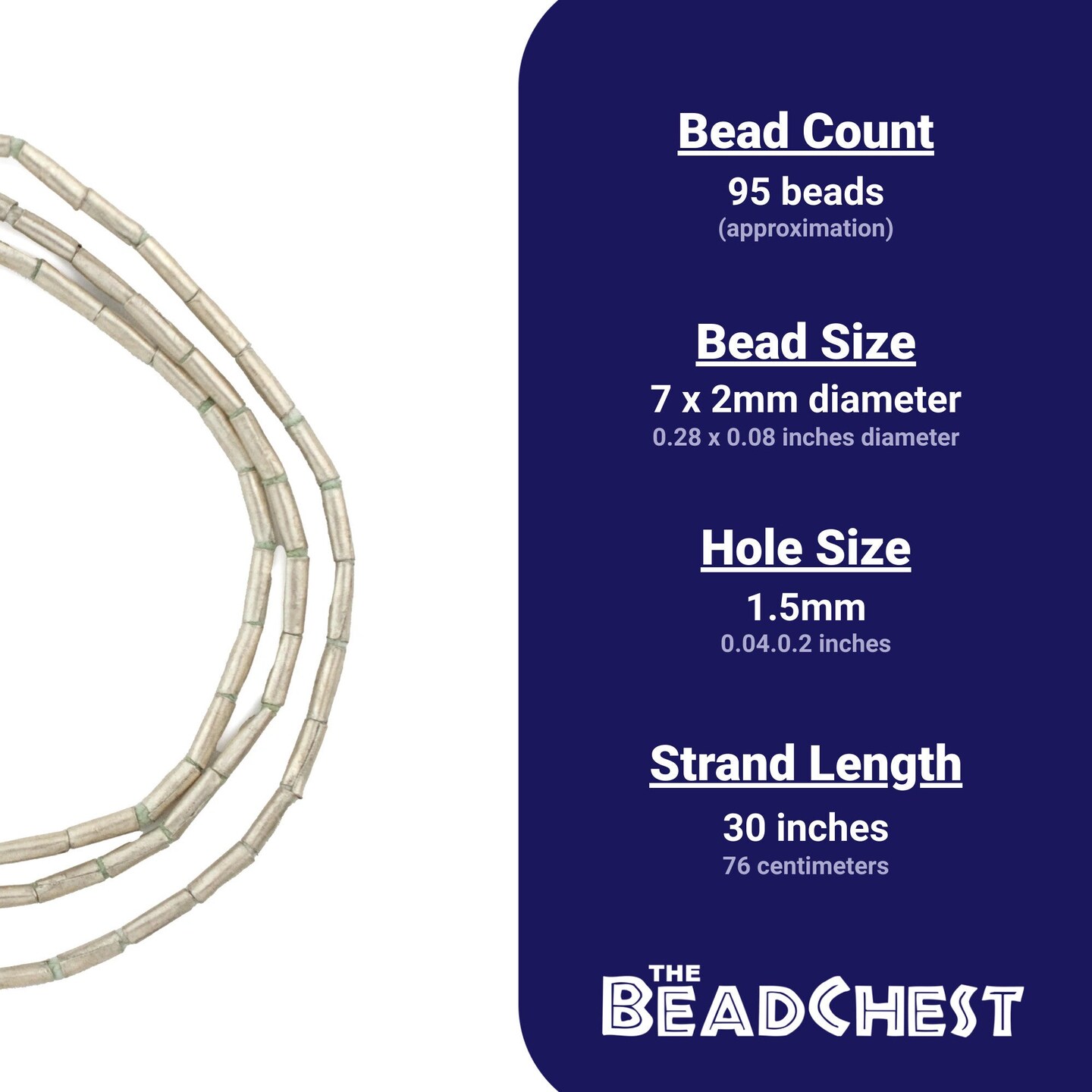 The Bead Chest White Metal Tube Ethiopian Beads (2mm): Full Strand of African Metal Spacers for DIY Jewelry Making