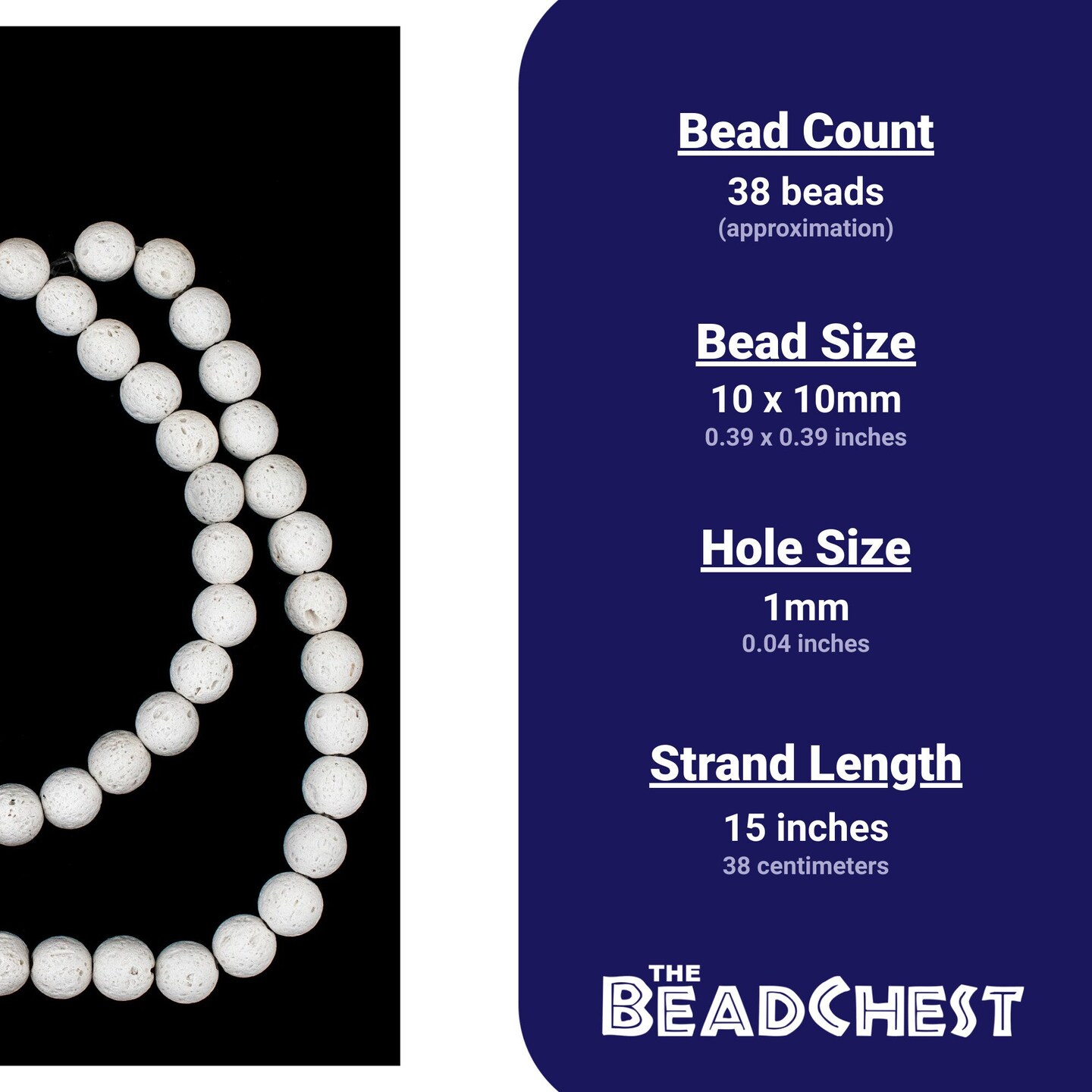The Bead Chest White Volcanic Lava Beads (10mm)