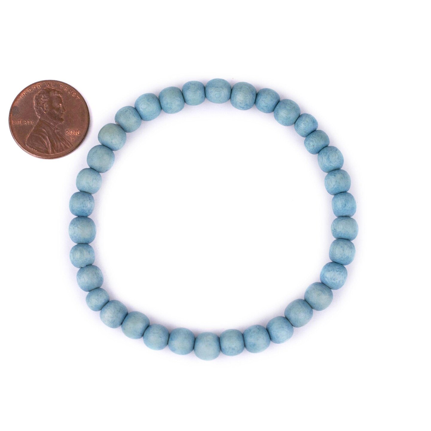 The Bead Chest Wood Stretch Bracelet, Light Blue - Stackable Beaded Jewelry, Unisex for Men & Women