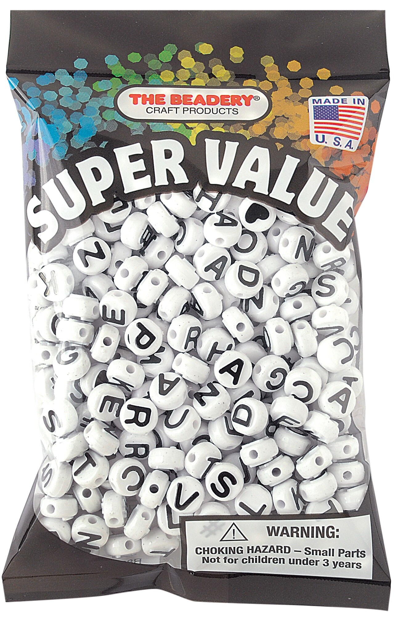 The Beadery Alphabet Beads 10mm-White With Black Lettering