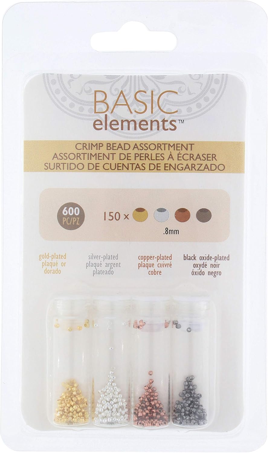 The Beadsmith Basic Elements Crimp Beads, 4 Vials in Assorted Colors, Uniform Round Shape, No Sharp Edges, Designed to Secure The Ends of Jewelry Stringing Wires and Cables