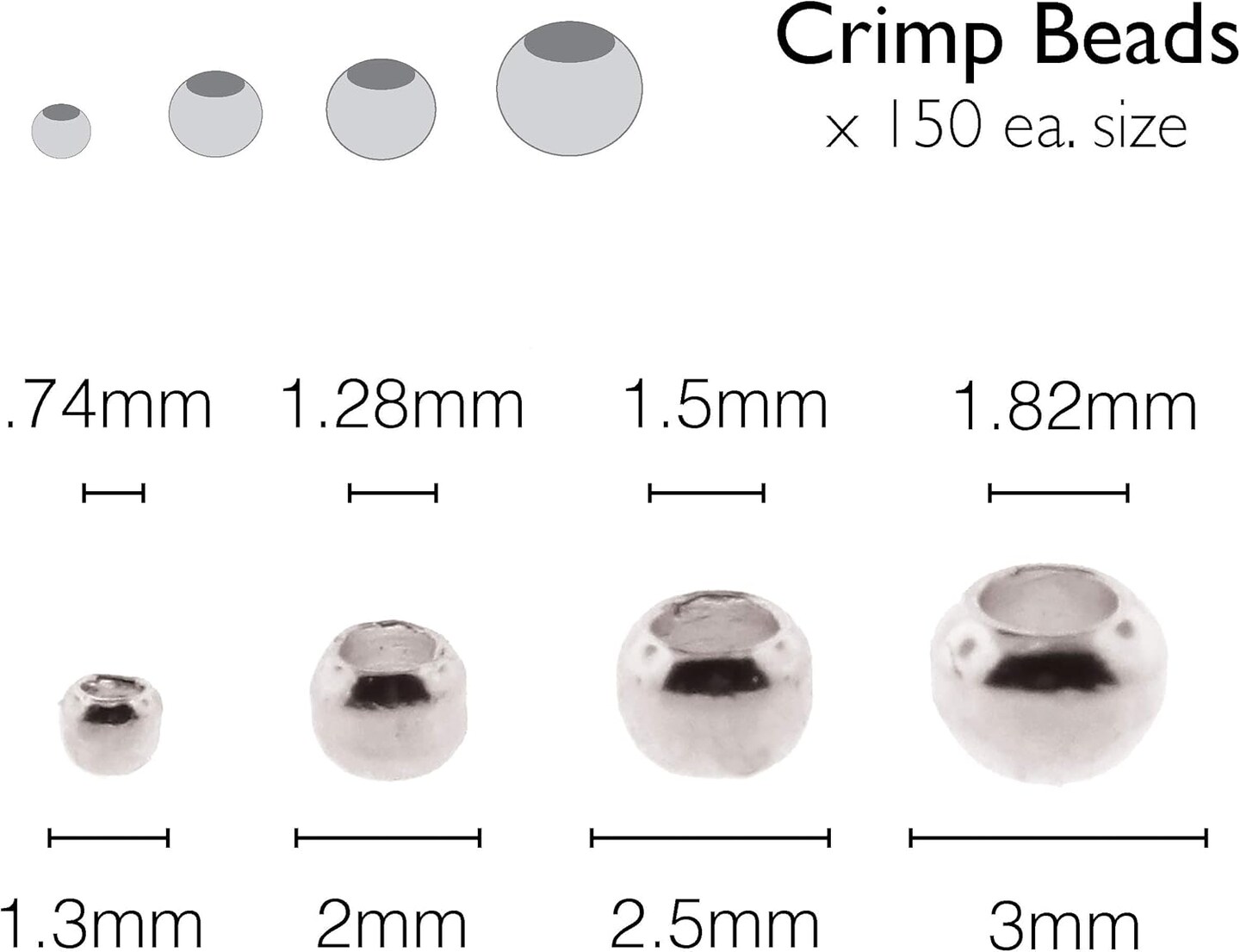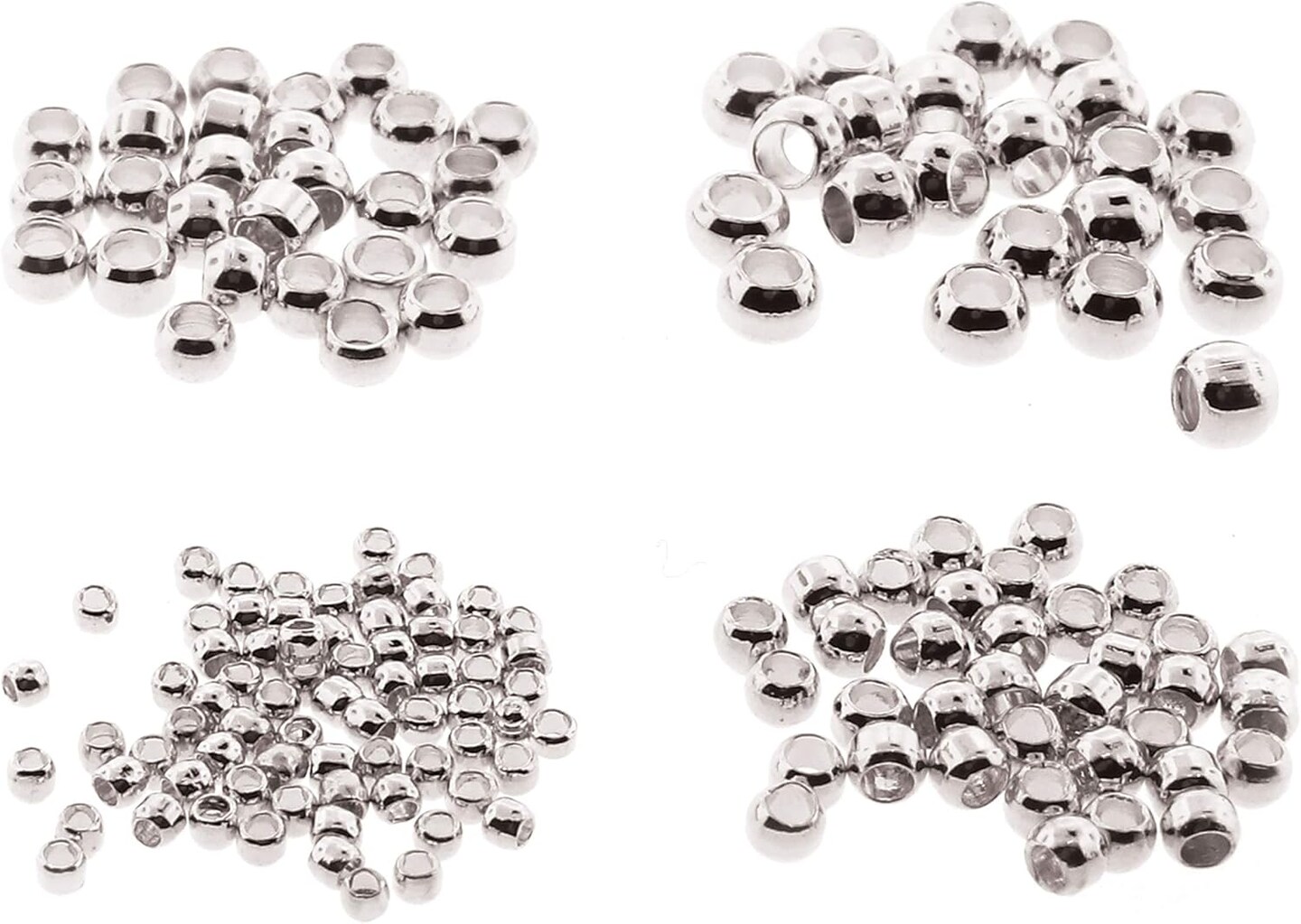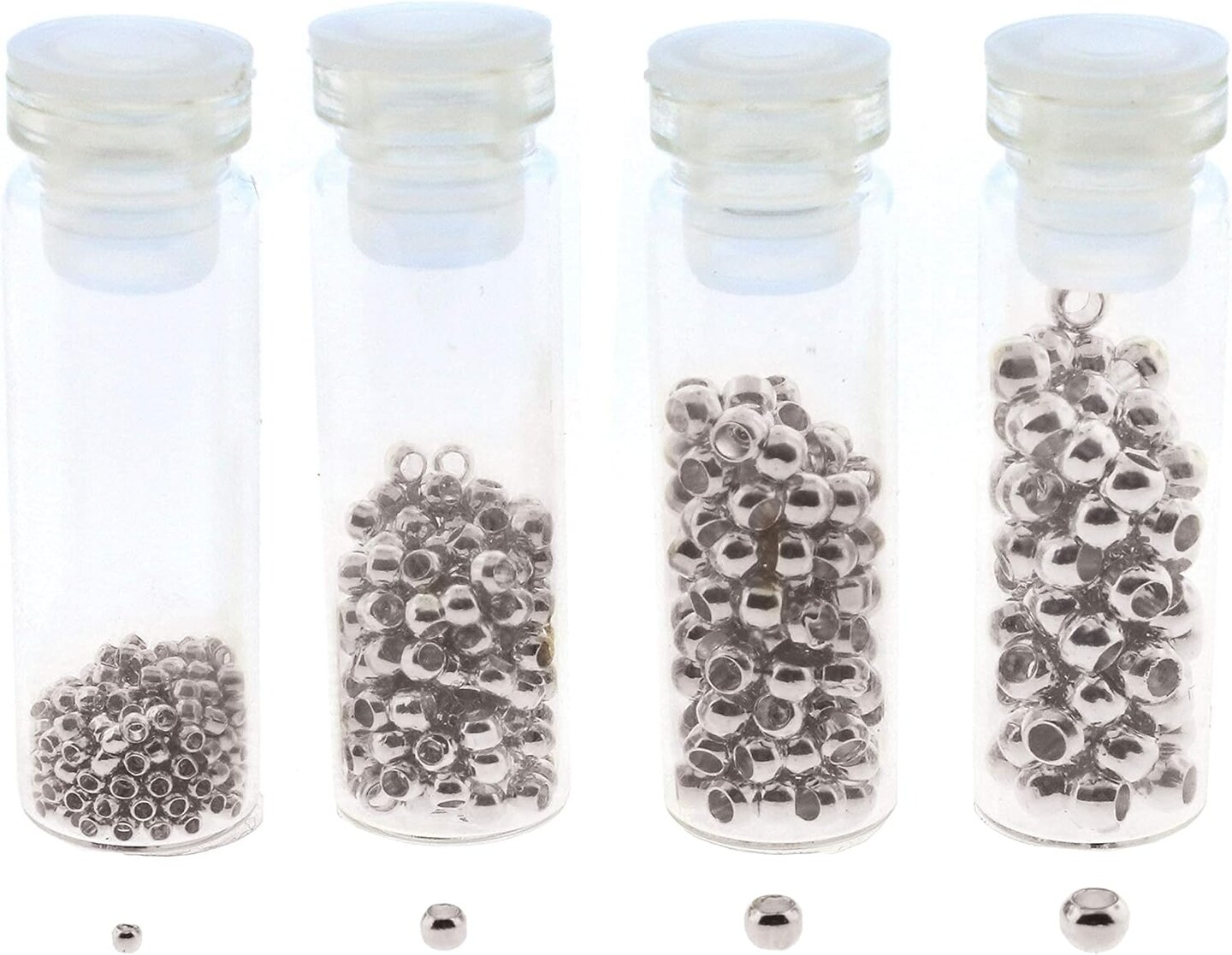 The Beadsmith Basic Elements Crimp Beads, 4 Vials in Assorted Sizes, Silver Color, Uniform Round Shape, No Sharp Edges, Designed to Secure The Ends of Jewelry Stringing Wires and Cables