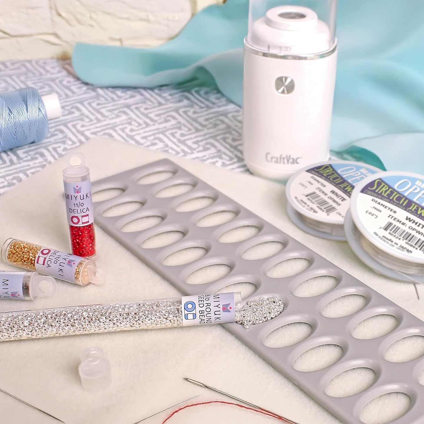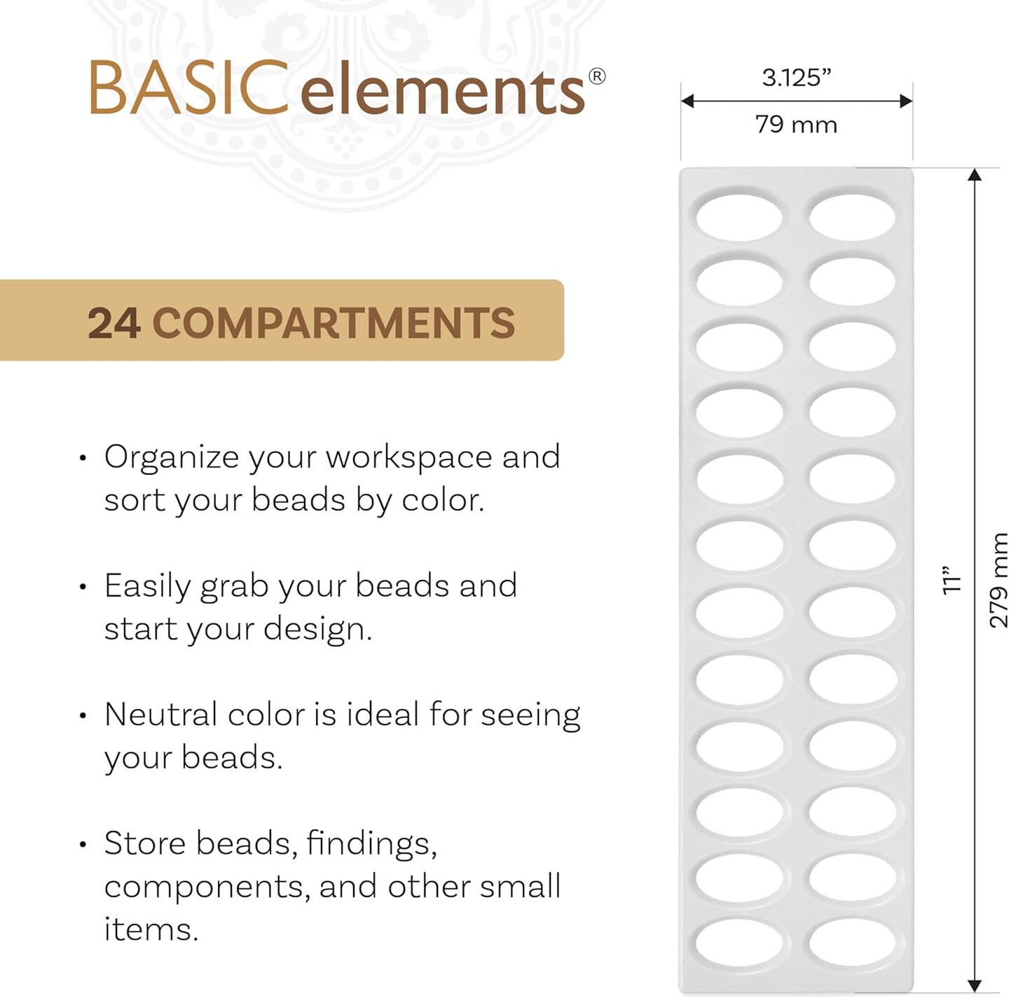 The Beadsmith Bead Mat and Sorter Set – Basic Elements – 11” x 3.13” Tray w/ 24 Holes and 11” x 14” Soft Mat, Use to Keep Seed Beads Organized, 2pc