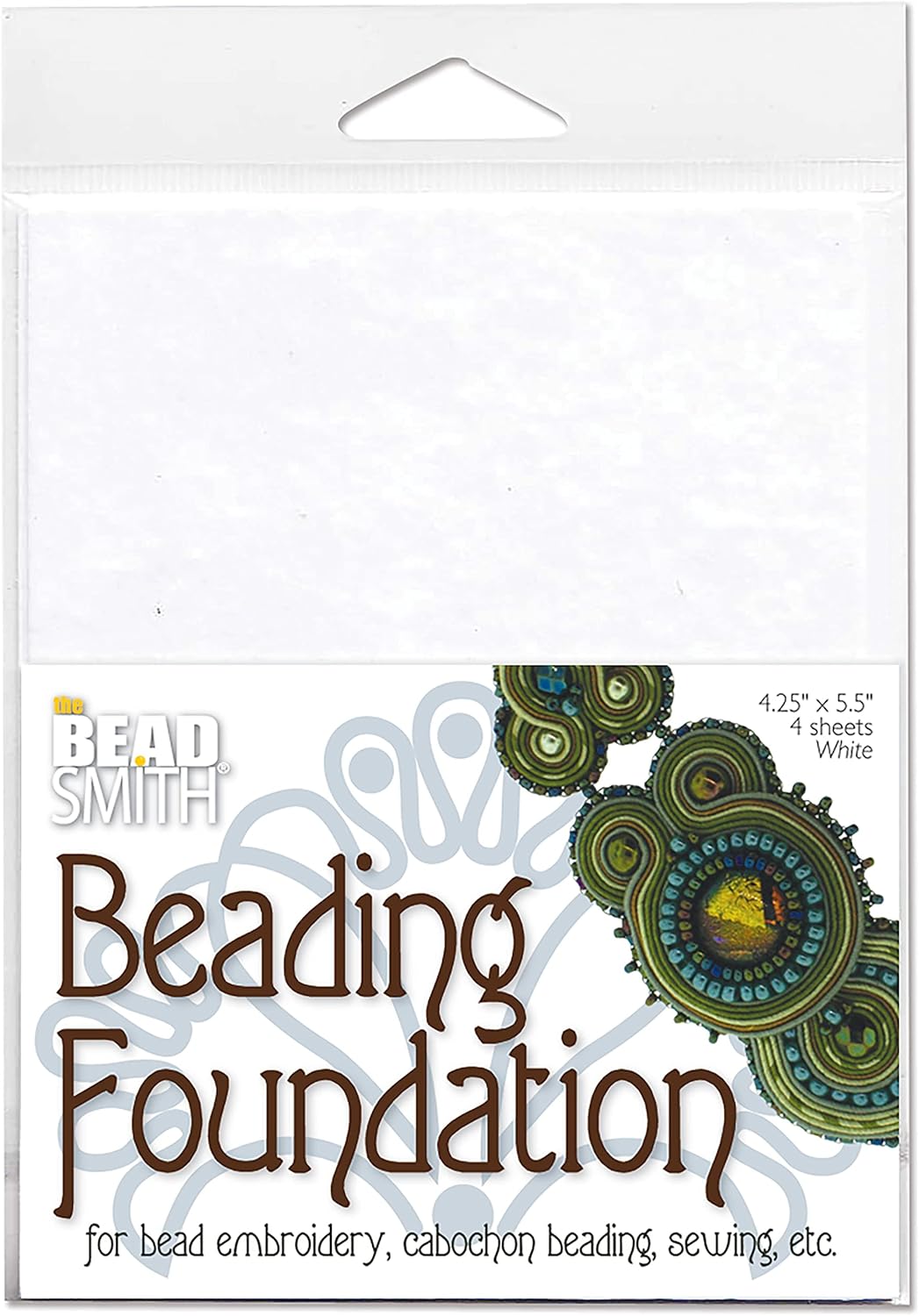 The Beadsmith Beading Foundation – 4.25 x 5.5 inches – White Fabric – 4 Sheets – Made in The USA – Stiff & Durable Material Used for Bead & Stitch Embroidery, cabochon Beading and Sewing