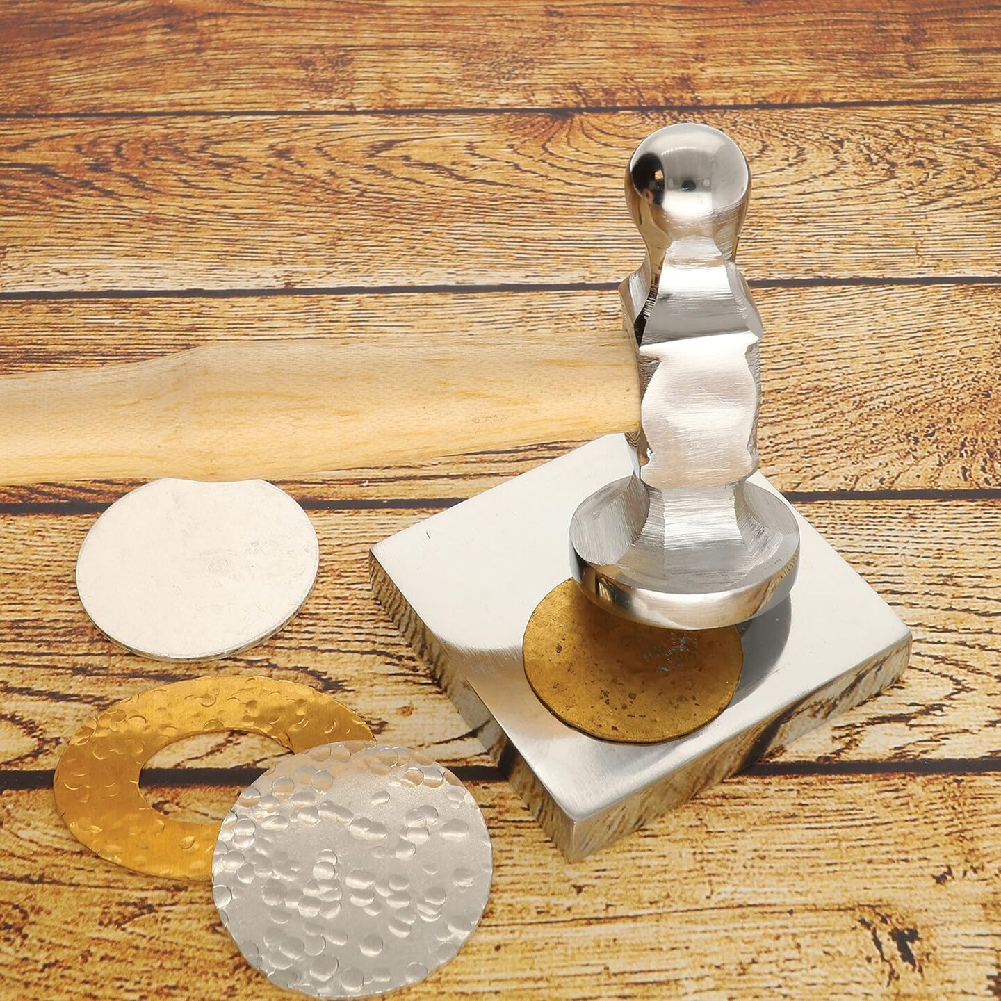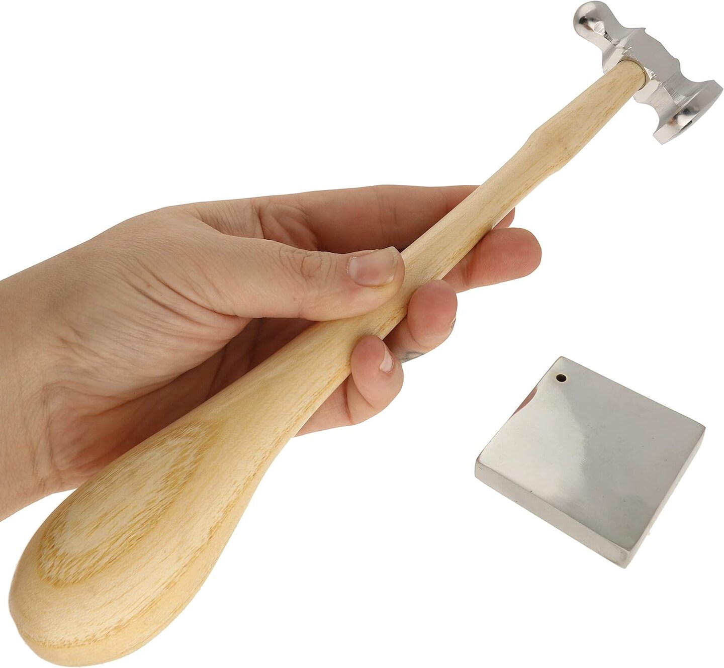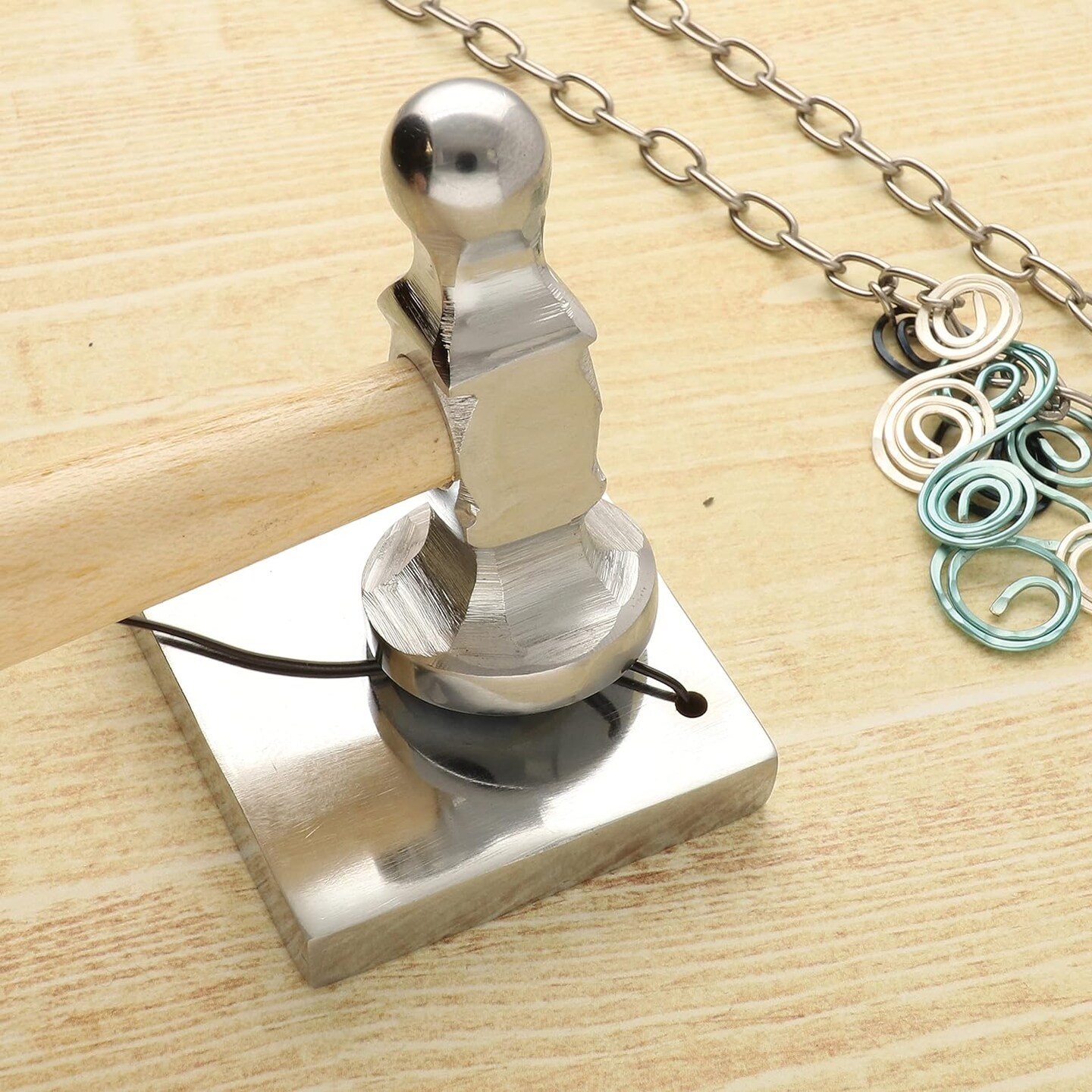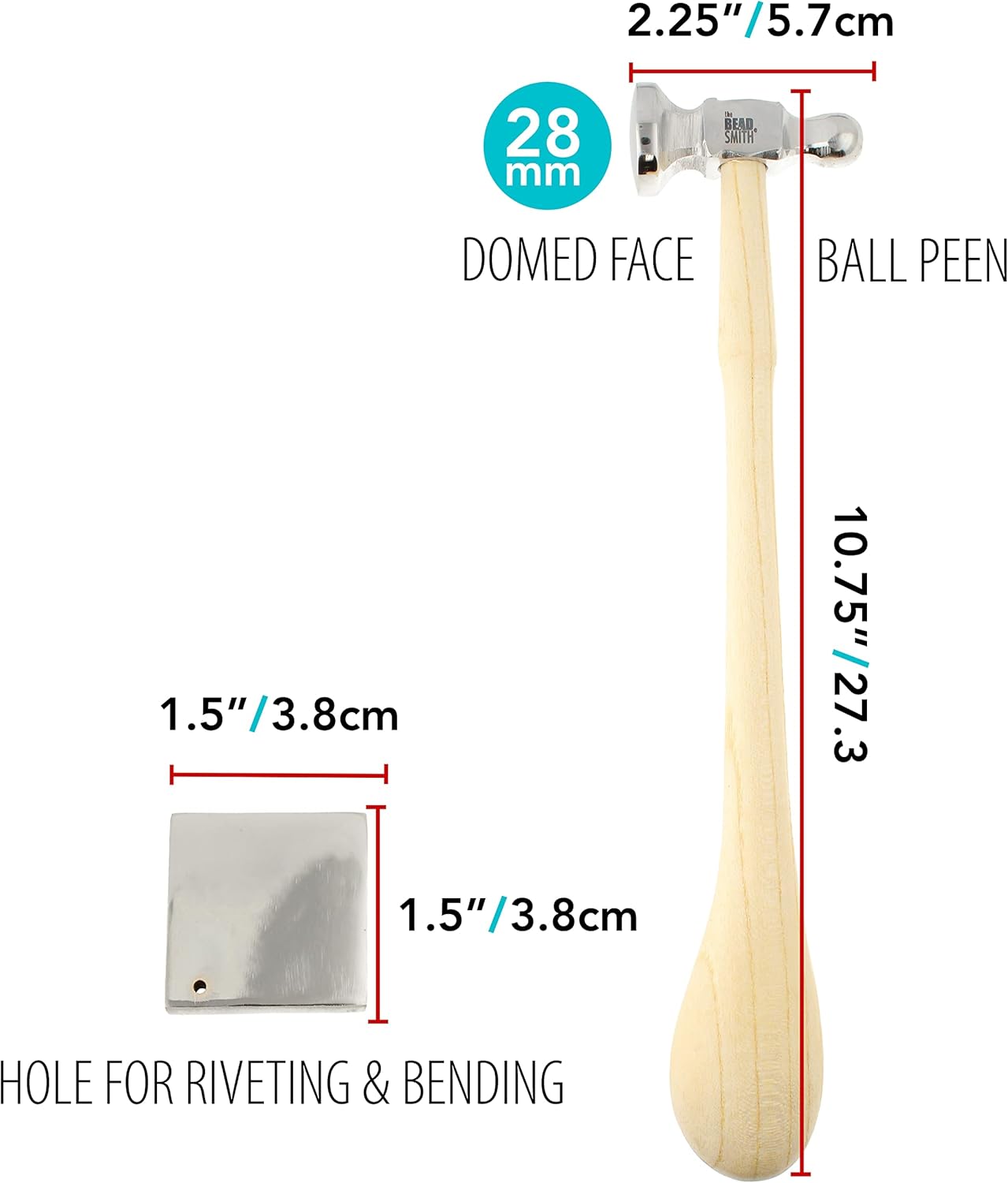 The Beadsmith Chasing Hammer & Bench Block - Two-Sided Hammer, 10.75”, Wood Handle – 1.5” Steel Block with Hole for Riveting & Bending – Tools for Metalworking, Stamping & Jewelry Making