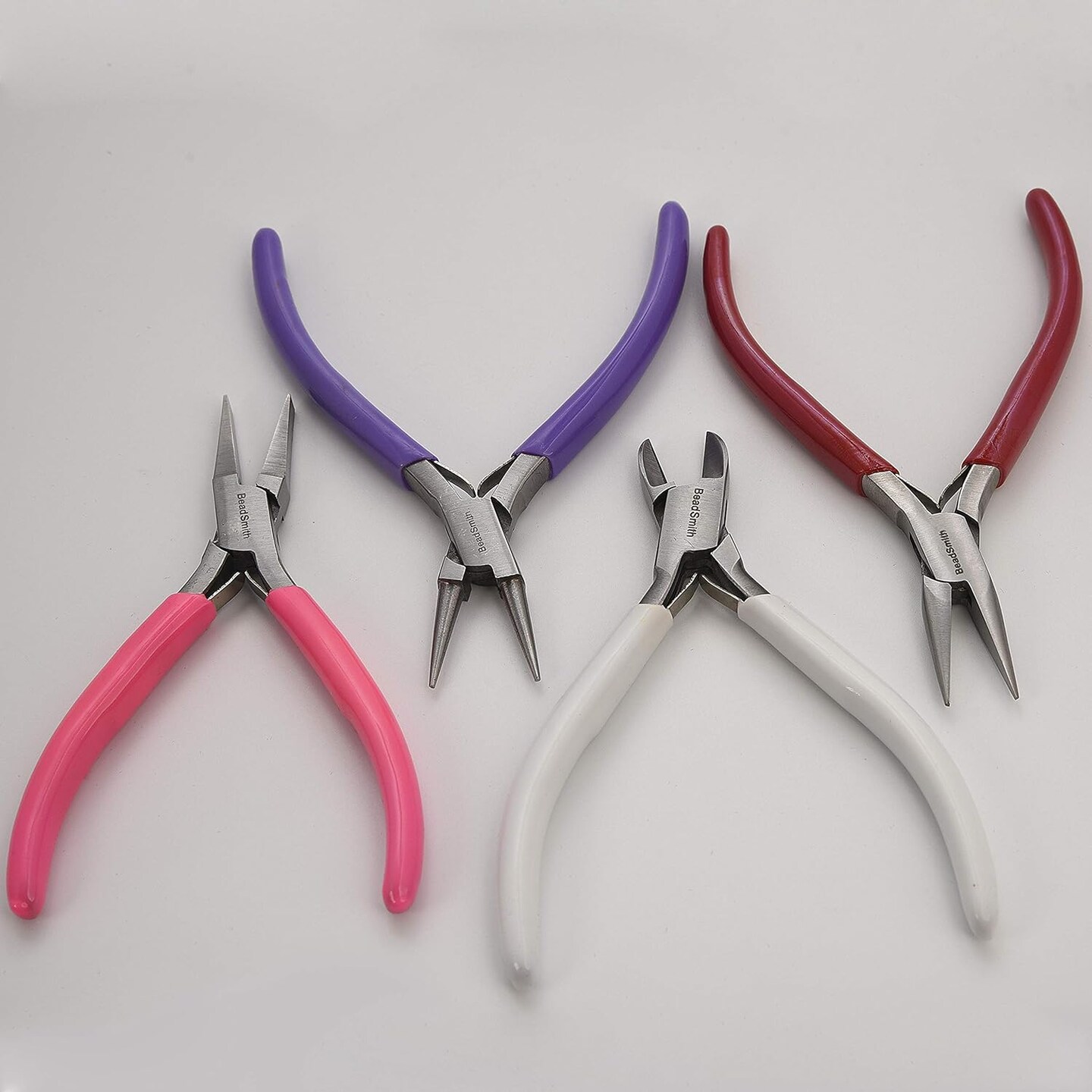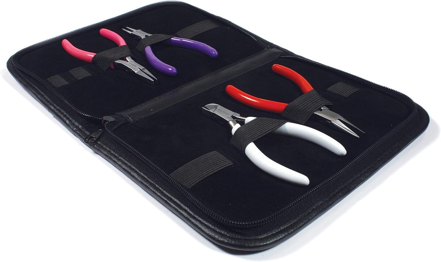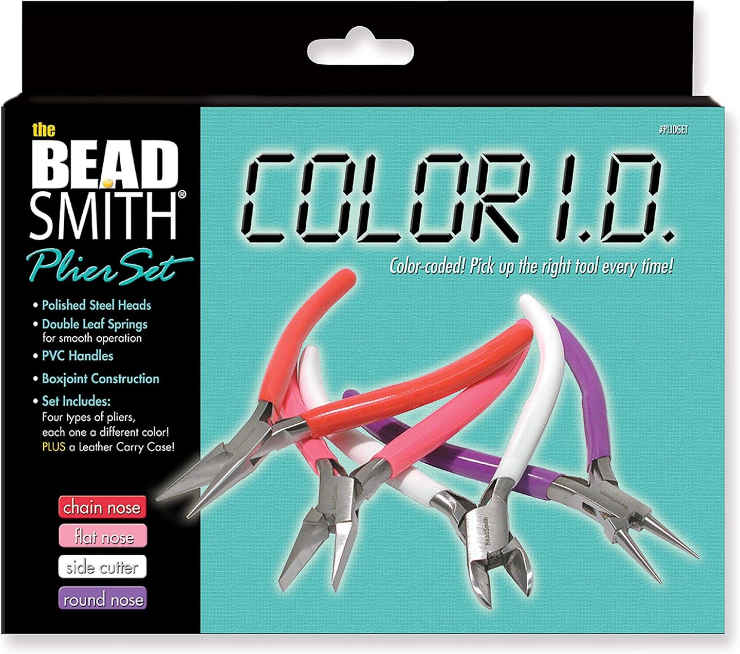 The Beadsmith Color-ID Set – 4.75”, 4-Pieces Includes: Chain Nose, Round Nose, Side Cutter, Flat Nose, & Leatherette Case – Double Leaf Spring, PVC Comfort Handle – Tools for Jewelry Making