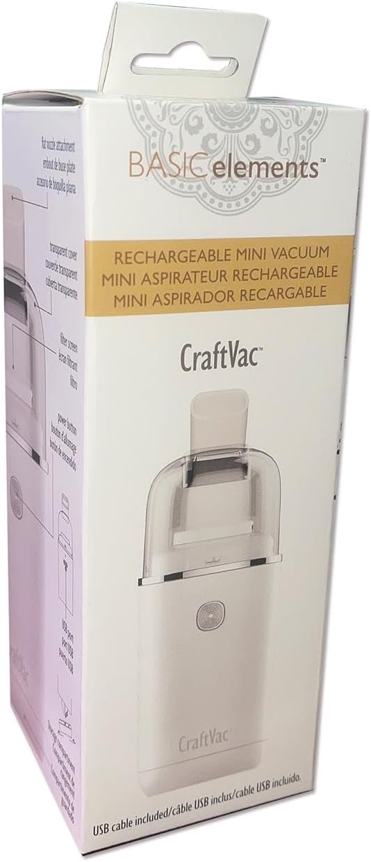 The Beadsmith CraftVac – Rechargeable Mini Vacuum – Basic Elements – Quiet 1 Button Operation – 2 Suction Levels – 2 Nozzle Attachments – Great for Beads, Glitter & More – Instructions Included