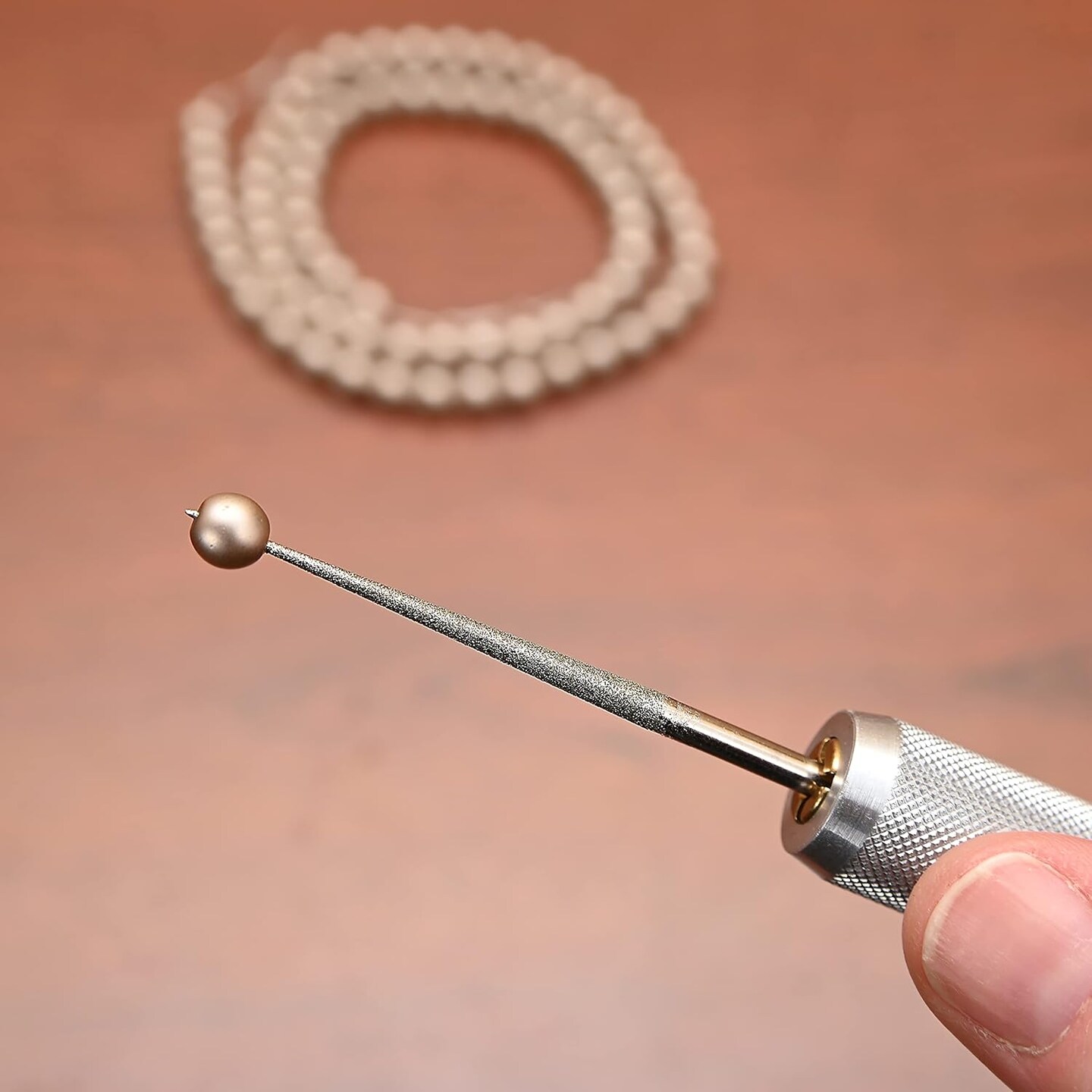 The Beadsmith Deluxe Diamond Coated Bead Reamer w/ 3 Interchangeable Tips & Aluminum Storage Handle, for Opening & Enlarging Holes & Smoothing Edges