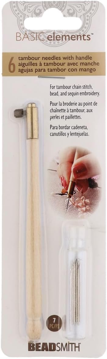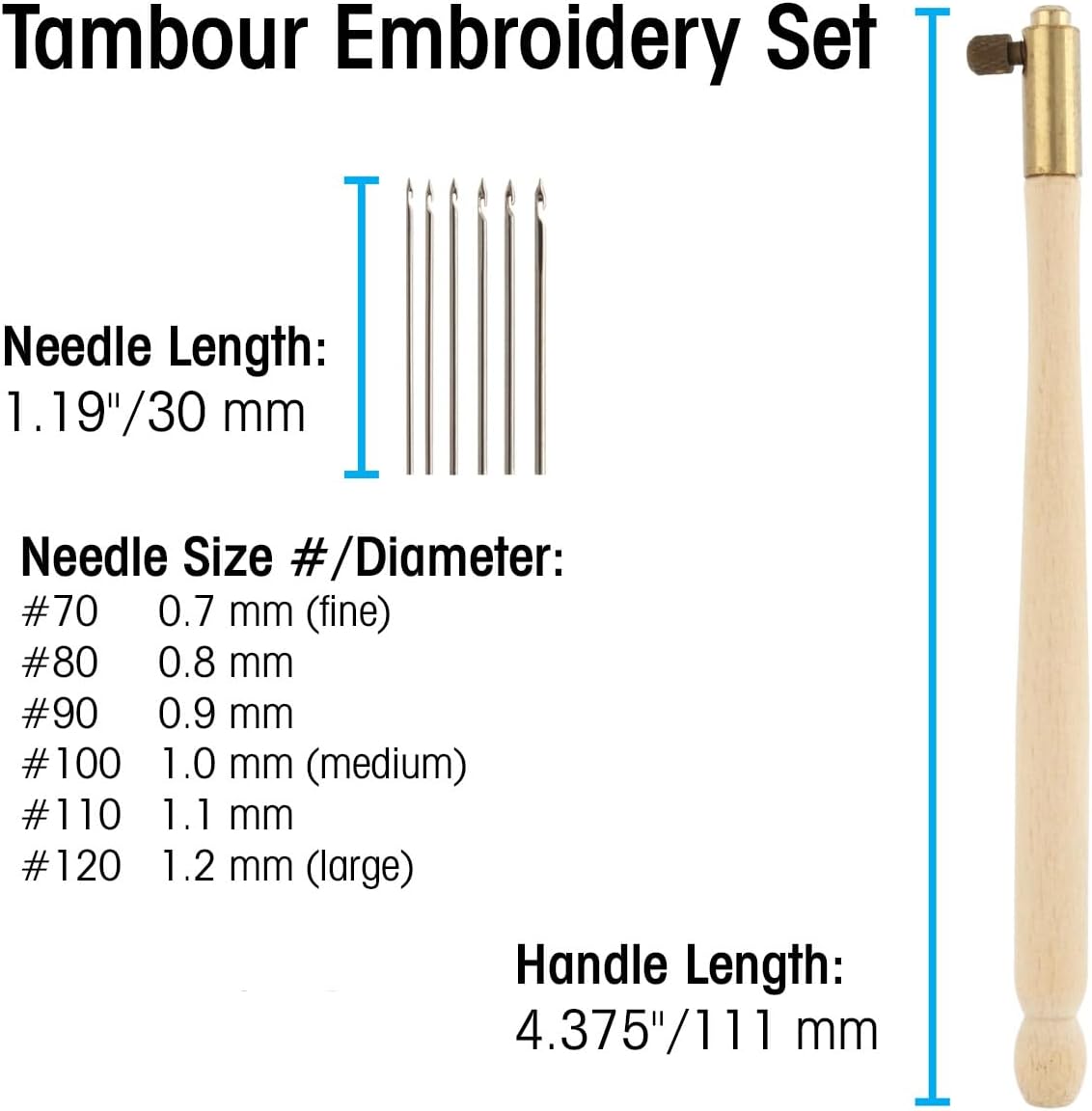 The Beadsmith Deluxe Tambour Embroidery Set, 6-Needle Set, with Hook Holder and Instructions, for Tambour Chain Stitch and Bead and Sequin Embroidery