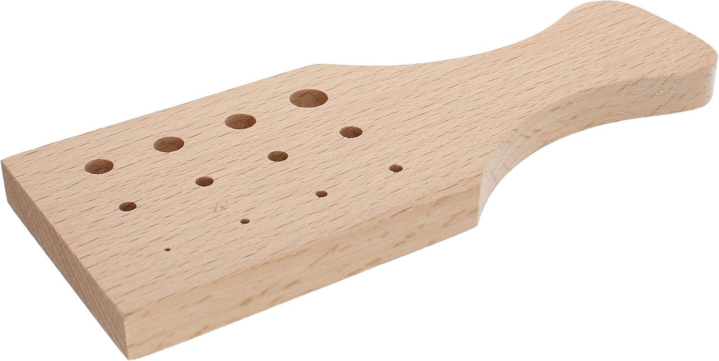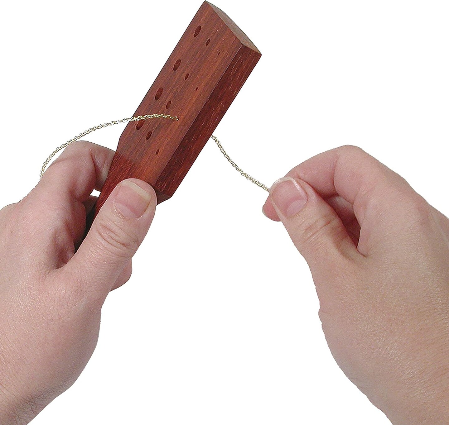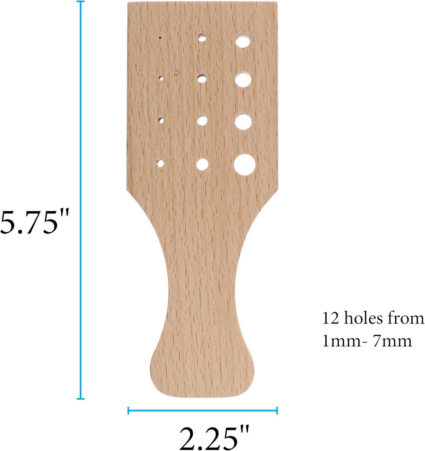 The Beadsmith Deluxe Wire Chain Drawplate, 6 x 2.25, Wooden, with Handle, 12 Holes - Diameter Range 1-7mm, Smooth, Shape and condense Knitted, Crocheted Woven or Braided Wire