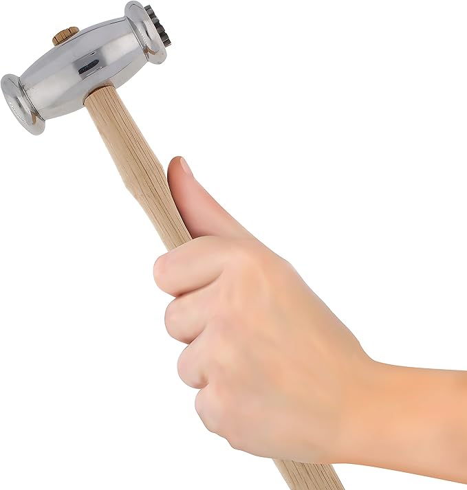 The Beadsmith Double-Faced Texture Hammer - Metal Elements Wooden Handle Steel Head - Texturing Tool Used to Add Patterns & Dimension to Metalwork