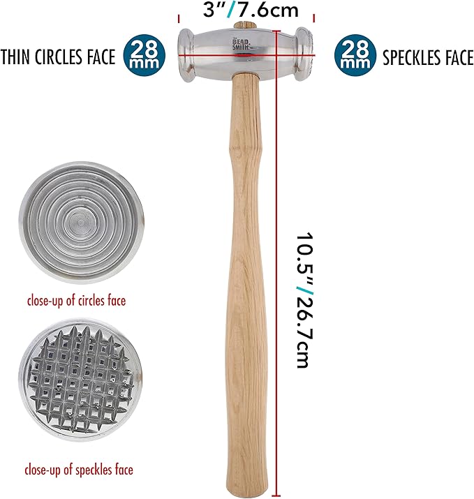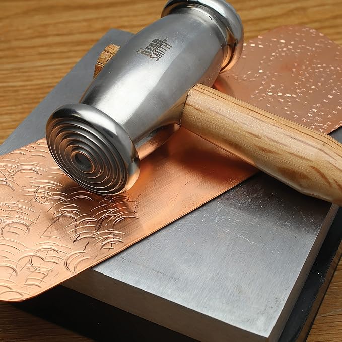 The Beadsmith Double-Faced Texture Hammer - Metal Elements Wooden Handle Steel Head - Texturing Tool Used to Add Patterns & Dimension to Metalwork