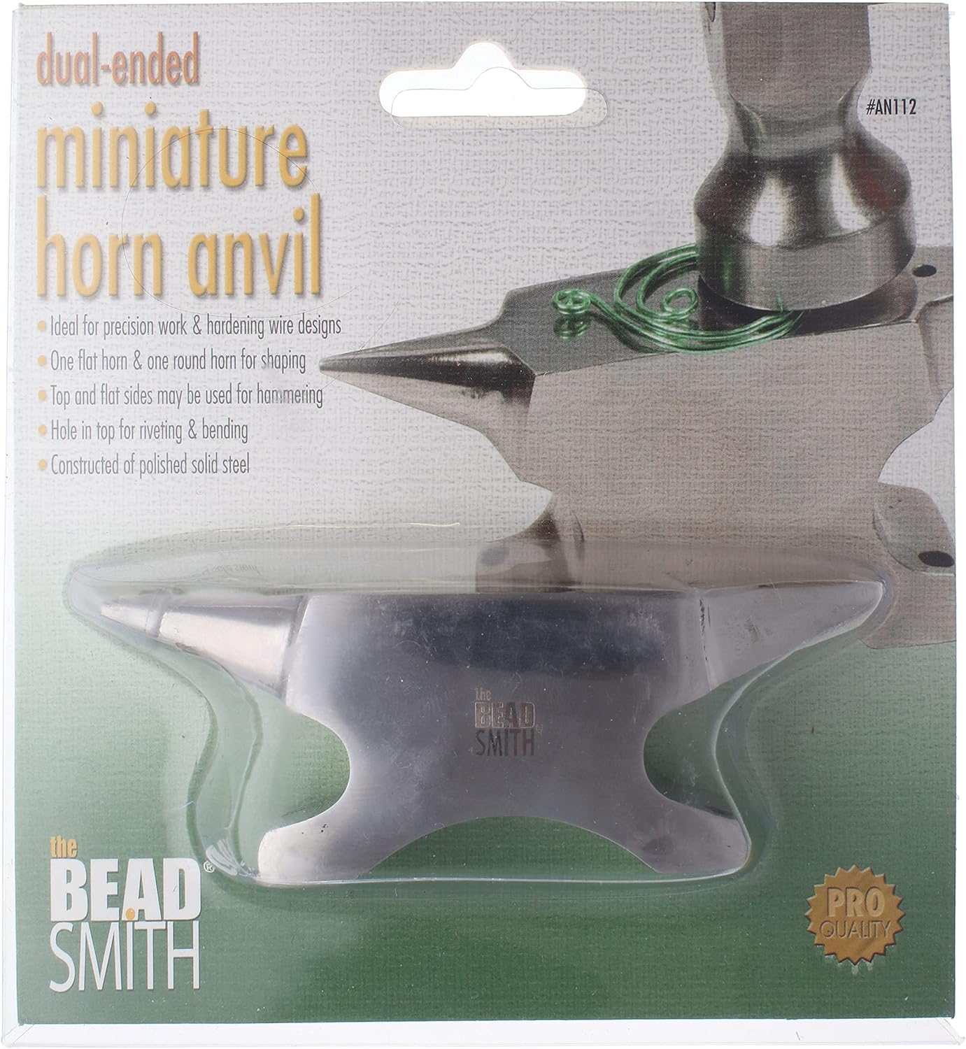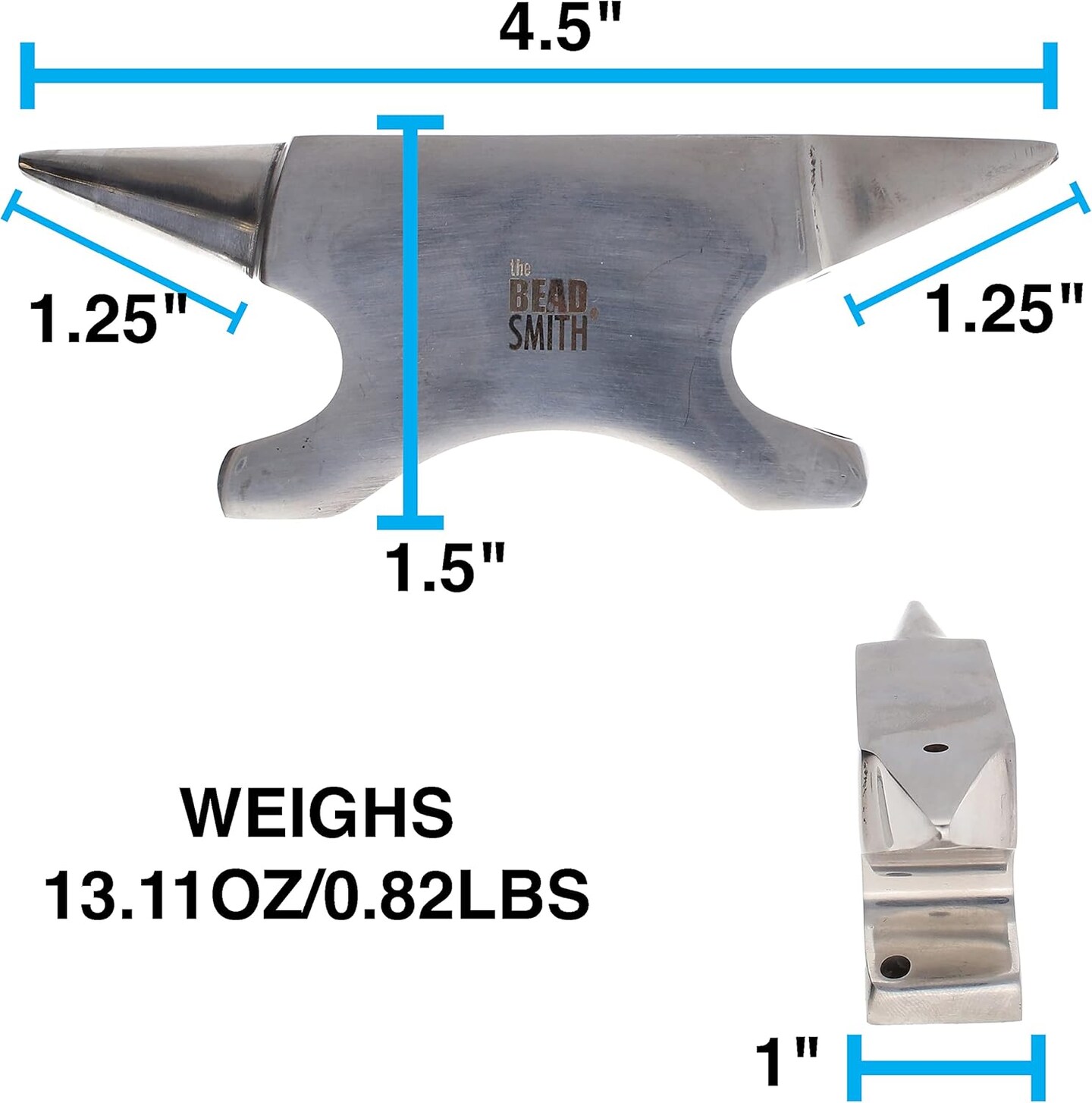 The Beadsmith Dual-Ended Horn Anvil – Mini Size 2.5 x 1 x 1.5 inches – 118mm Tip to Tip – 13.11oz/0.82lbs – Made of Solid Stainless Steel – Flat Horn and Rounded Horn – Use for Hardening Wire Designs