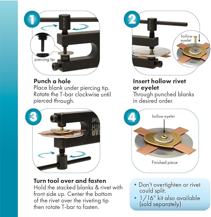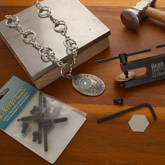 The Beadsmith EZ Rivet Piercing & Flaring Kit - Includes 3/32" T-bar Screws and Flat & Domed Bases for Piercing & Flaring - Domed Base for Use with Rings – Flat Base for Sheet Metal Up to 18 Gauge
