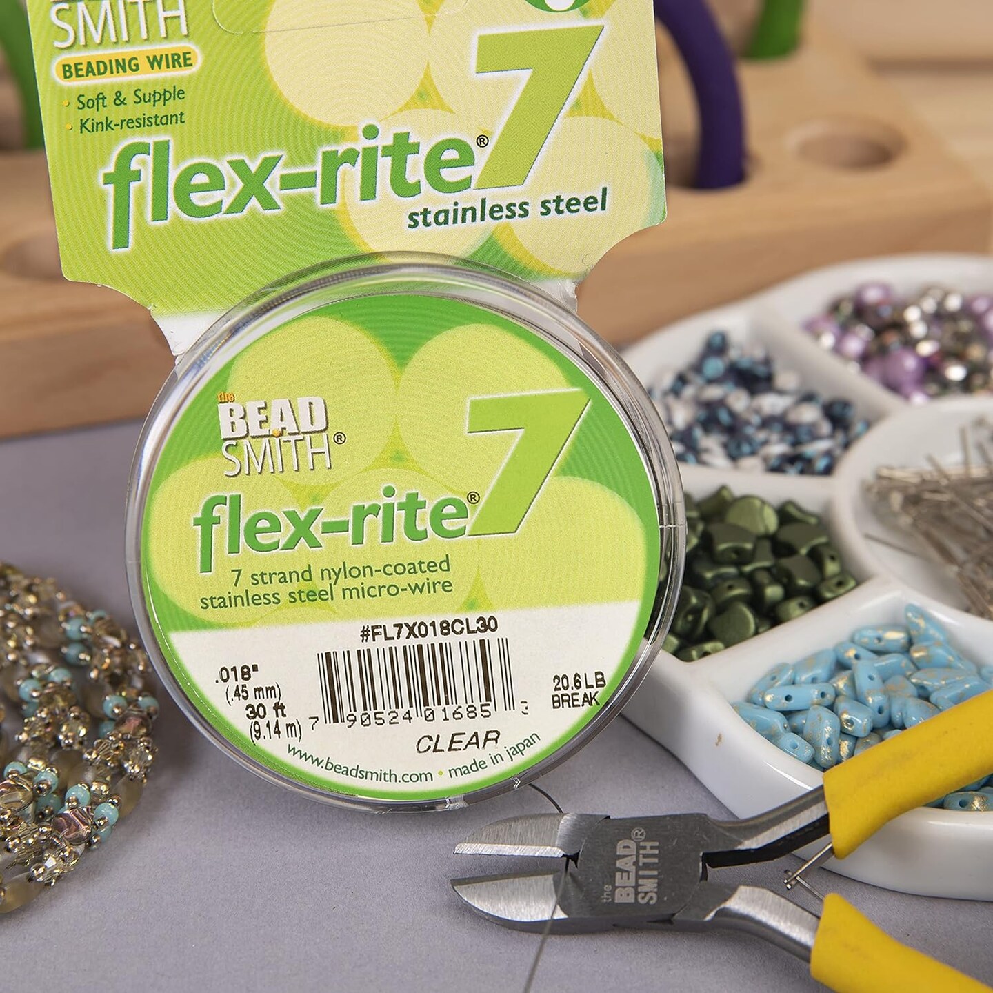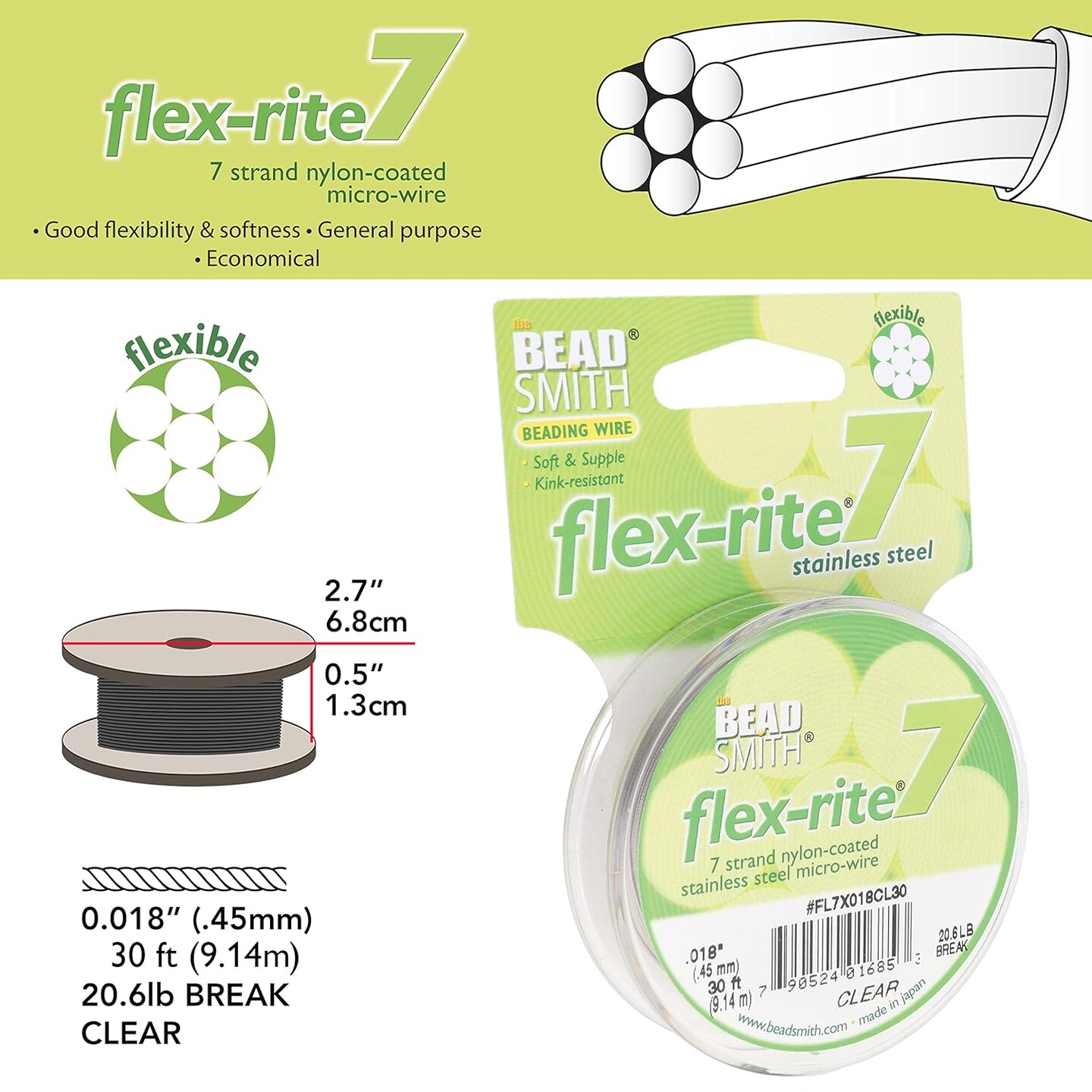 The Beadsmith Flex-Rite 7 Strand Nylon Coated, Stainless-Steel Beading Wire, Jewelry Making Supply (.018 Dia, Clear - 30 Ft)
