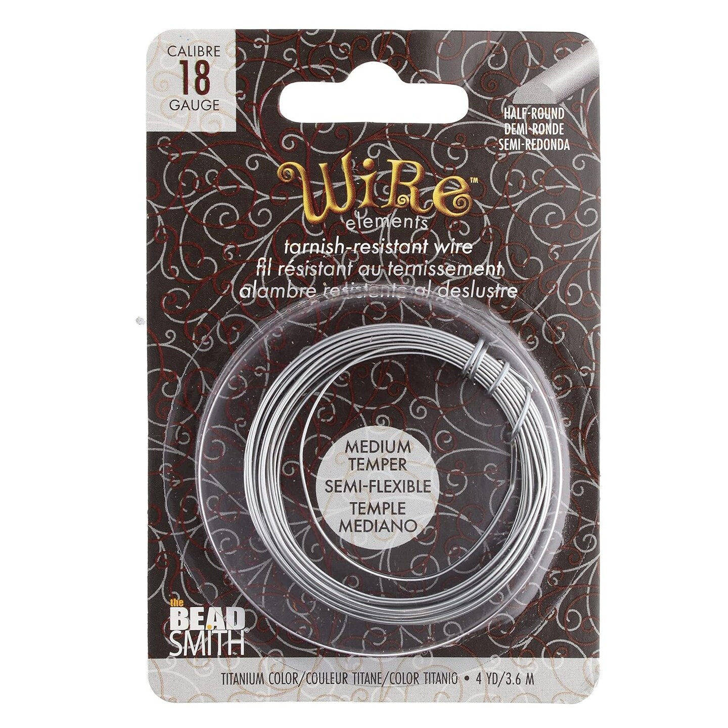 The Beadsmith Half-Round Craft Wire - Wire Elements - Medium Temper - 18 Gauge, 4 Yard Coil - Titanium Color - Beading Wire Used for Jewelry Making, Wire Wrapping, and Other DIY Arts & Crafts