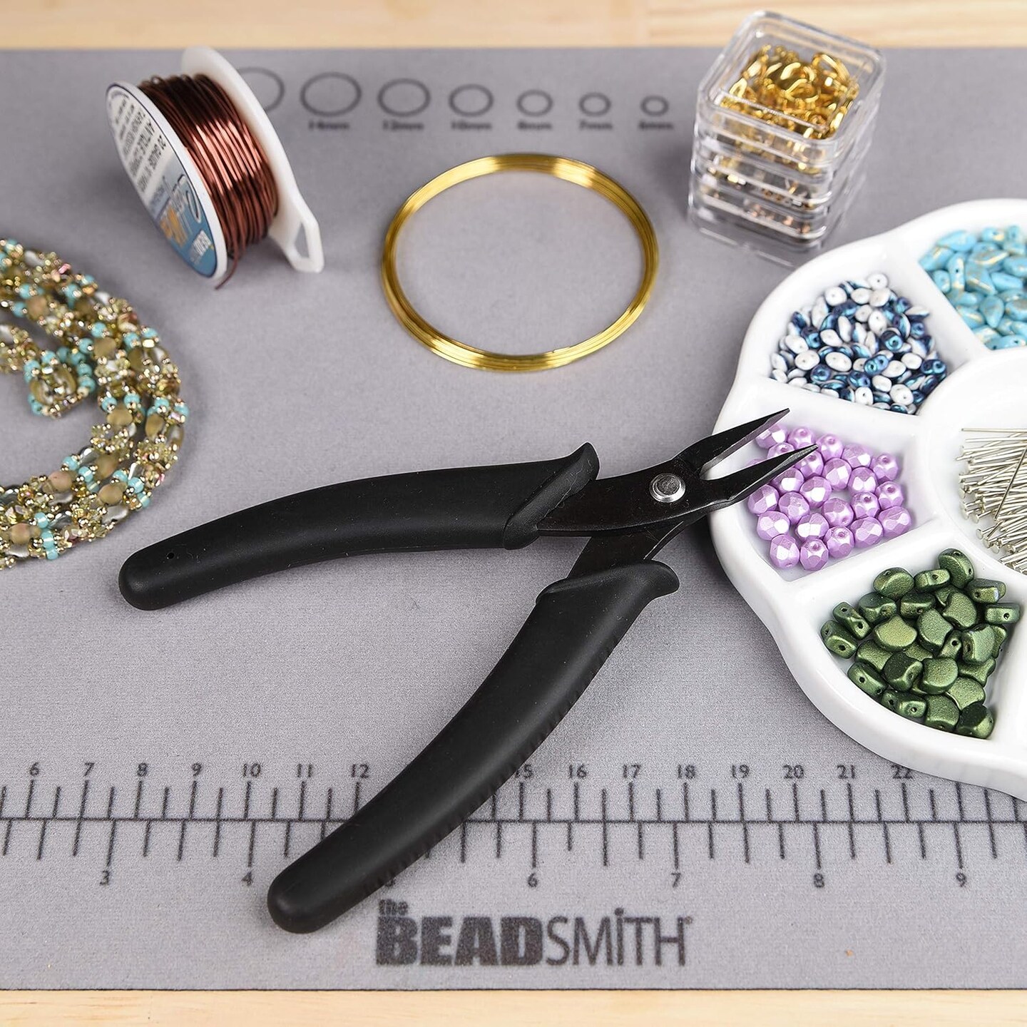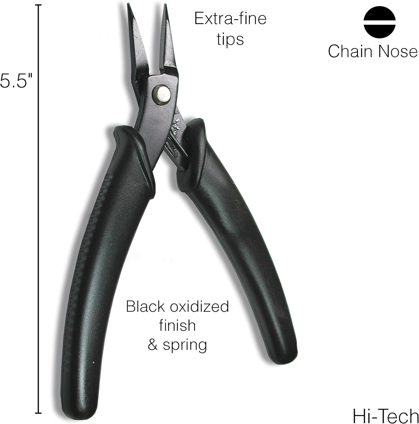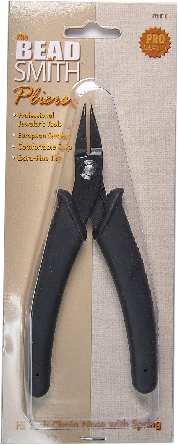 The Beadsmith Hi-Tech Chain Nose Pliers, 5.5 inches (140mm) with high carbon steel head, black comfort grip handle with spring, tool for jewelry making, electronics or micro mechanics