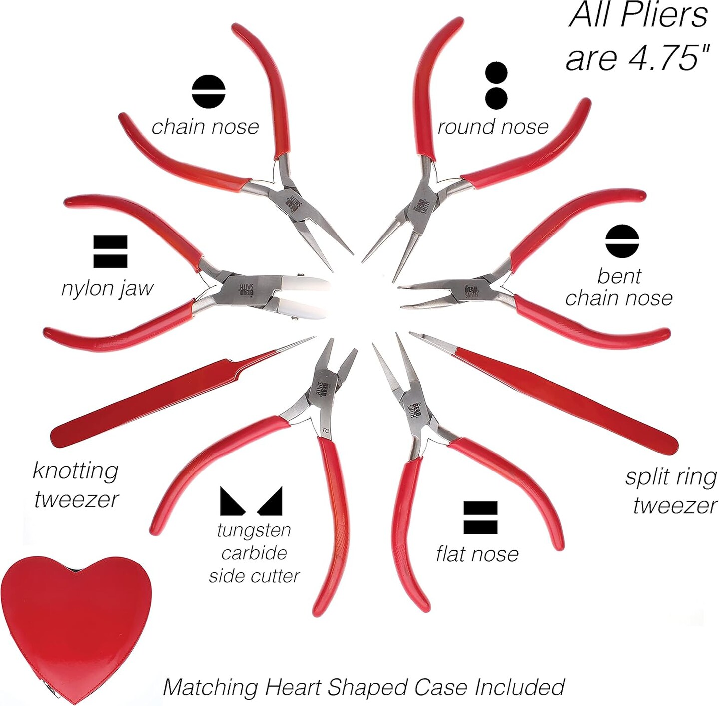 The Beadsmith I Beads Pliers Round Nose, Chain Nose, Bent Chain Nose and Tungsten Carbide Side Cutter – Heart-Shaped Carrying Case Included – Tools for Jewelry Making
