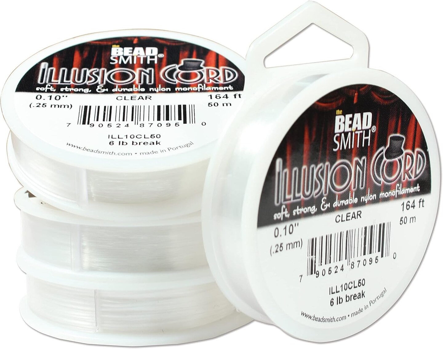 The Beadsmith Illusion Cord – Durable Nylon Monofilament – Clear Color, 0.254mm Diameter, 50-Meter Spool – Jewelry Making Cord for Creating Necklaces, Bracelets and DIY Crafts