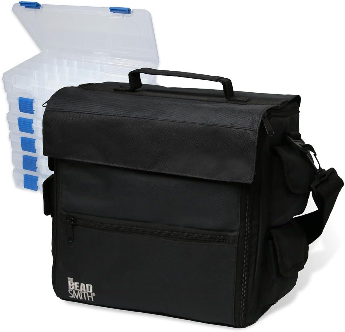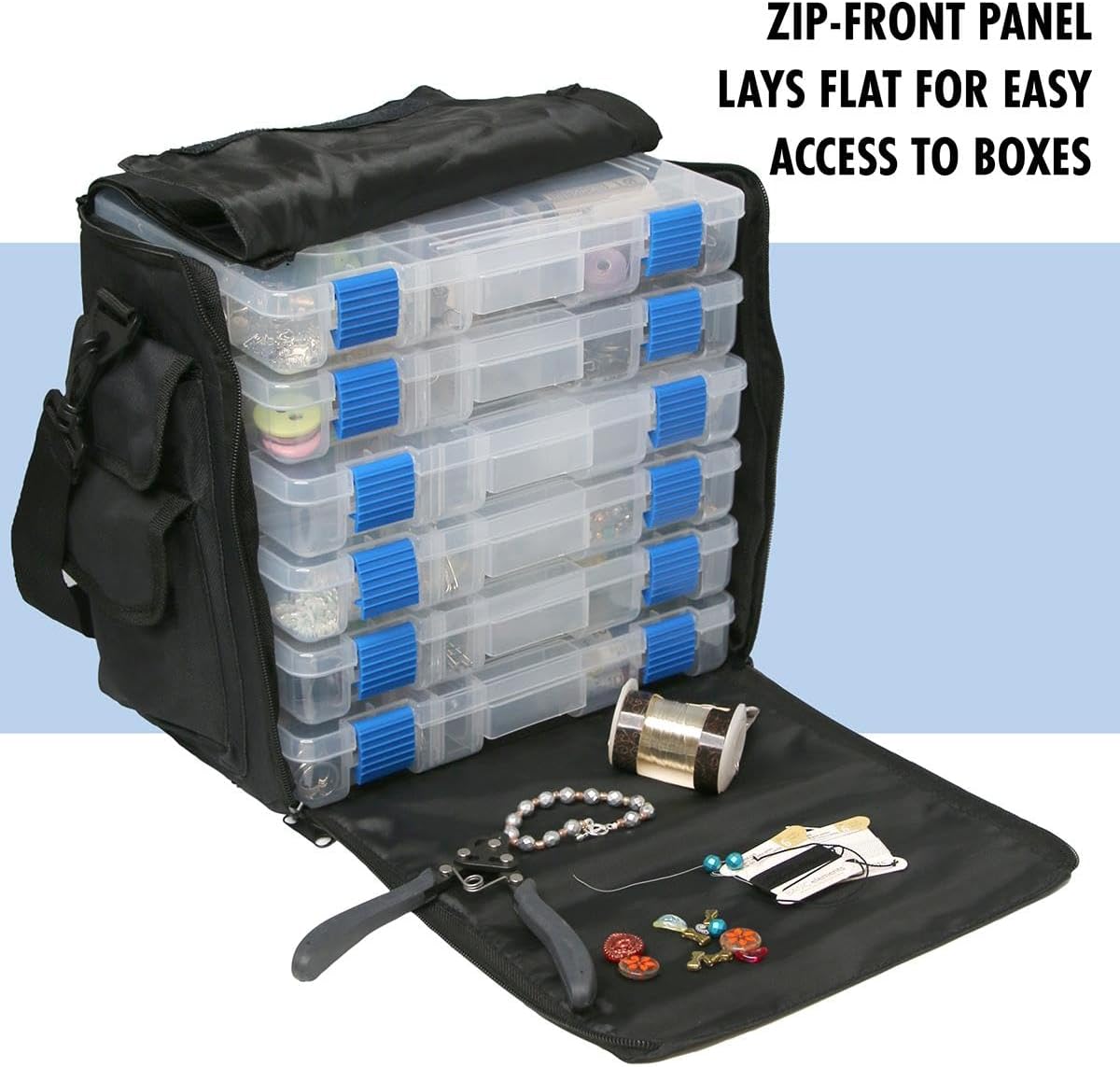 The Beadsmith Keeper Traveler - 13" x 7.5" x 11.5" - Includes 6 Organizer Boxes, Zip Front Tote Bag with Carrying Handle & Removable Adjustable Strap - Portable Storage System for Beads & Supplies