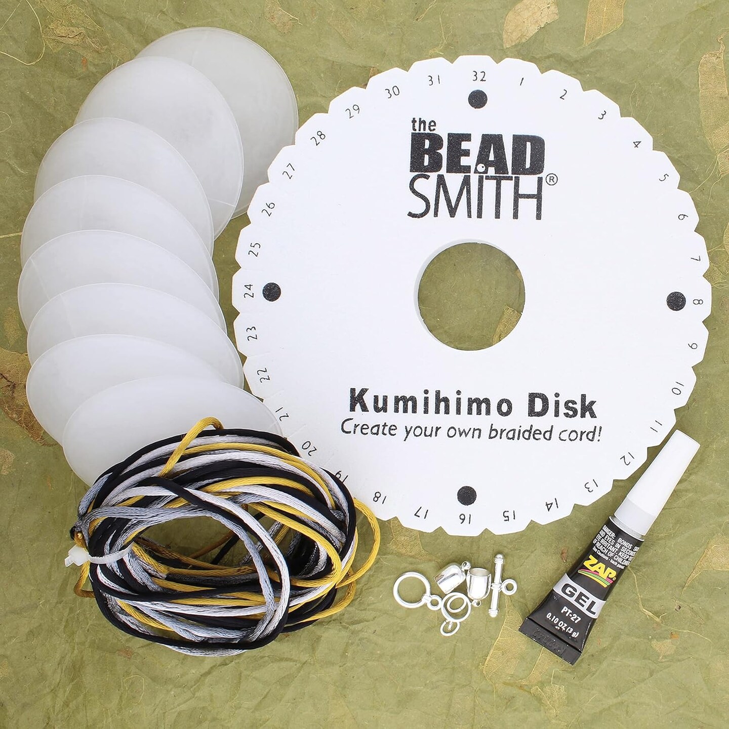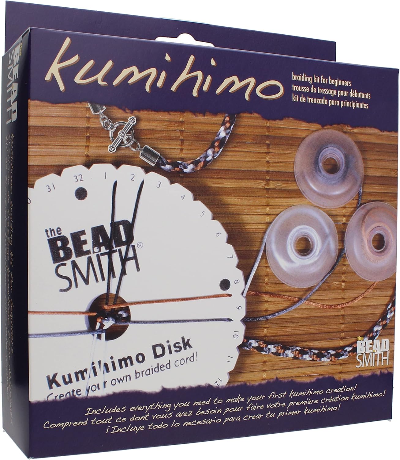 The Beadsmith Kumihimo Starter Kit – Includes Disk,Adhesive, Bobbins, Findings, Cord and Instructions & Projects – Japanese Art of Braiding – Beginner Set with All Your Jewelry Tools to Get Started