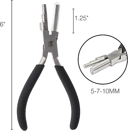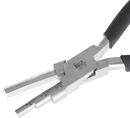 The Beadsmith Little Wrapper Pliers – Multi-Step Wrapping Tool – 5, 7 & 10mm barrels - 6 Inches Long, 1.25” Stainless Steel Jaws, Cushioned Grips – Use to Shape Rings and Make Consistent Sized Loops