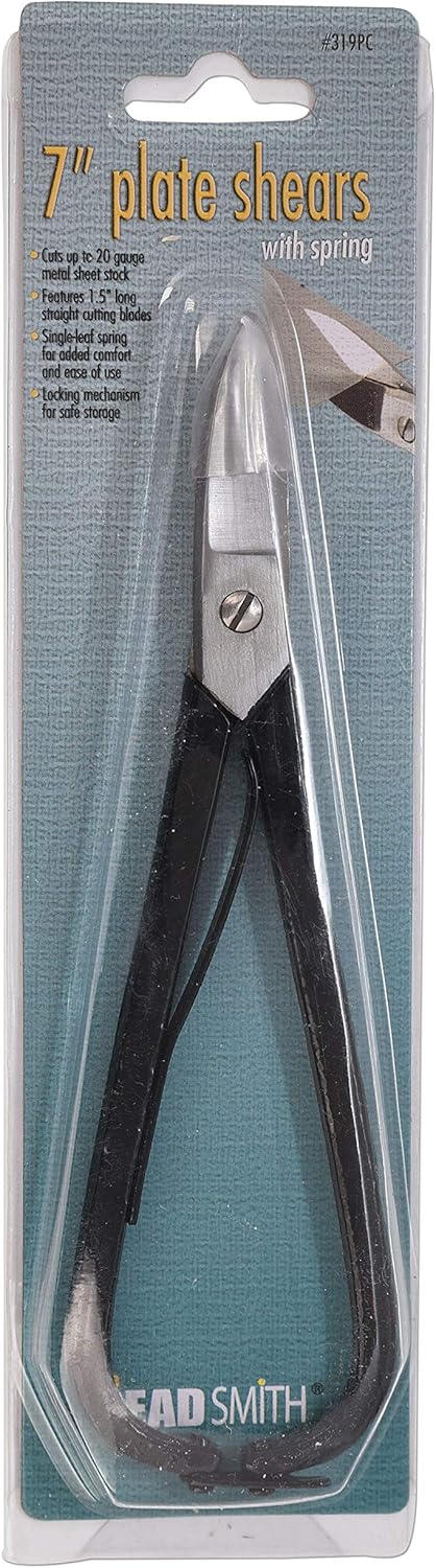 The Beadsmith Metal Plate Shears – 7 inches (178mm) – Steel Blades – Comfort Grip with Single-Leaf Spring Handle – Tool for Cutting Stamping Blanks, Sheet Metal (Up to 20 gauge) and Craft Wire