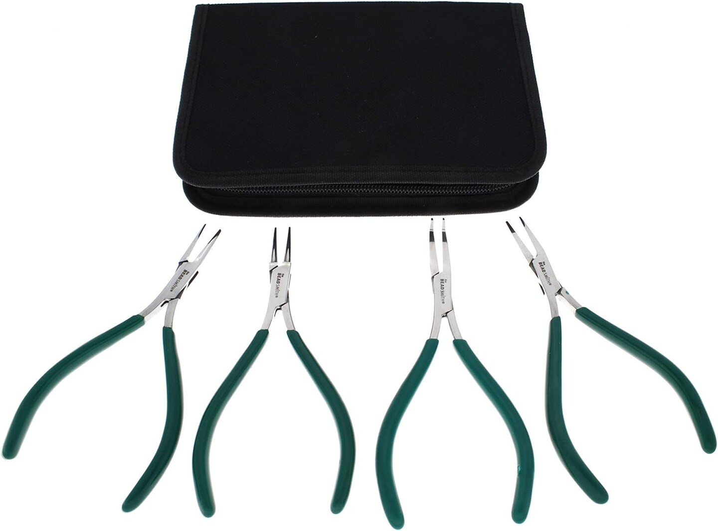 The Beadsmith Micro-Fine 4 Piece Plier with Springs Set - Chain, Round, Flat, and Bent Nose - 5' in Length