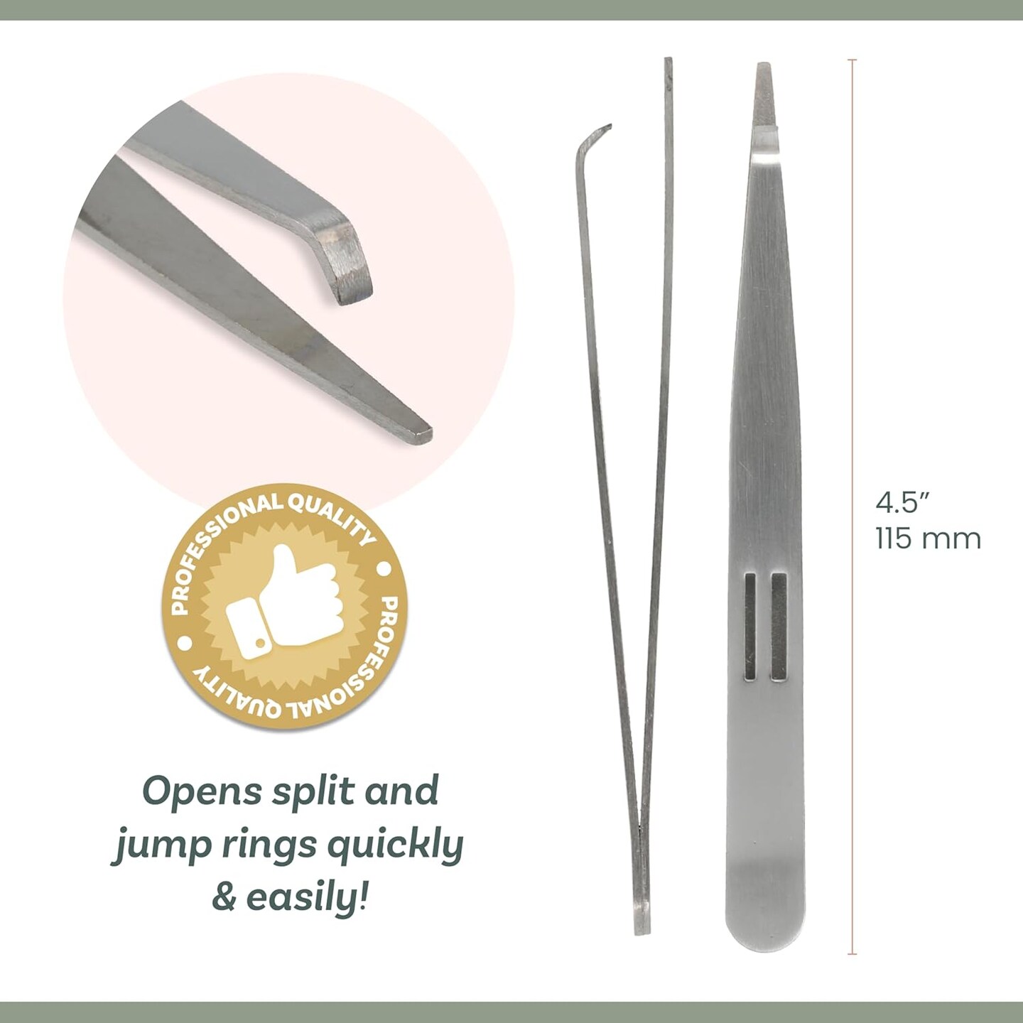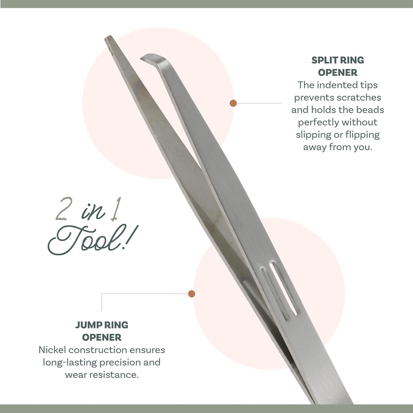 The Beadsmith Multipurpose Tweezers – 4.5” Split Ring Opening Tool with 2 Sizes of Jump Ring Openers, Tool for Jewelry Making