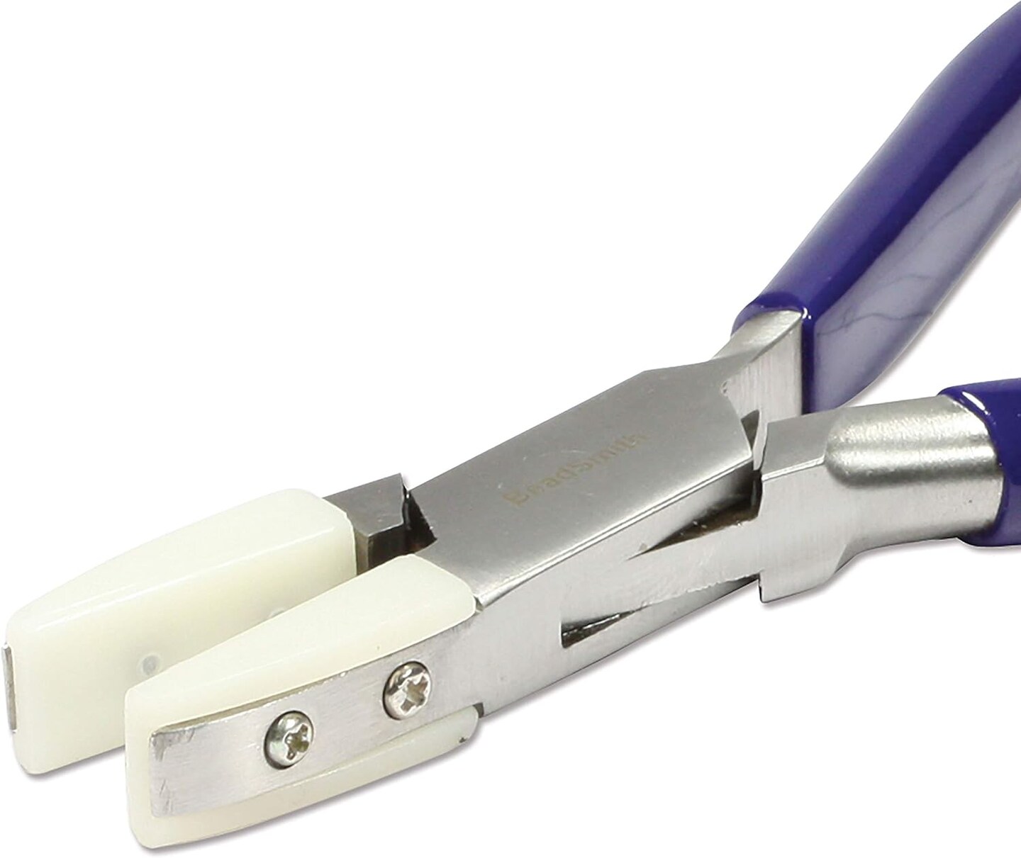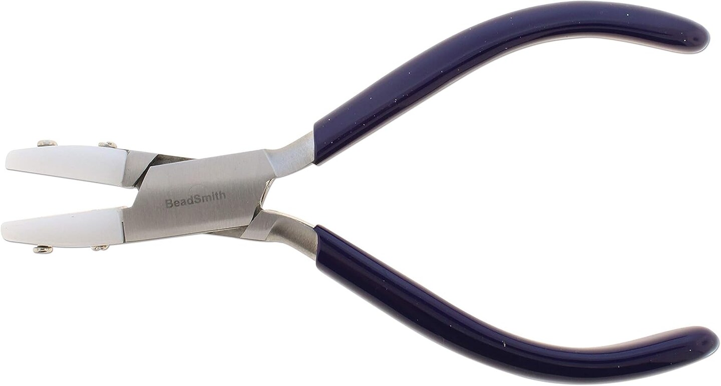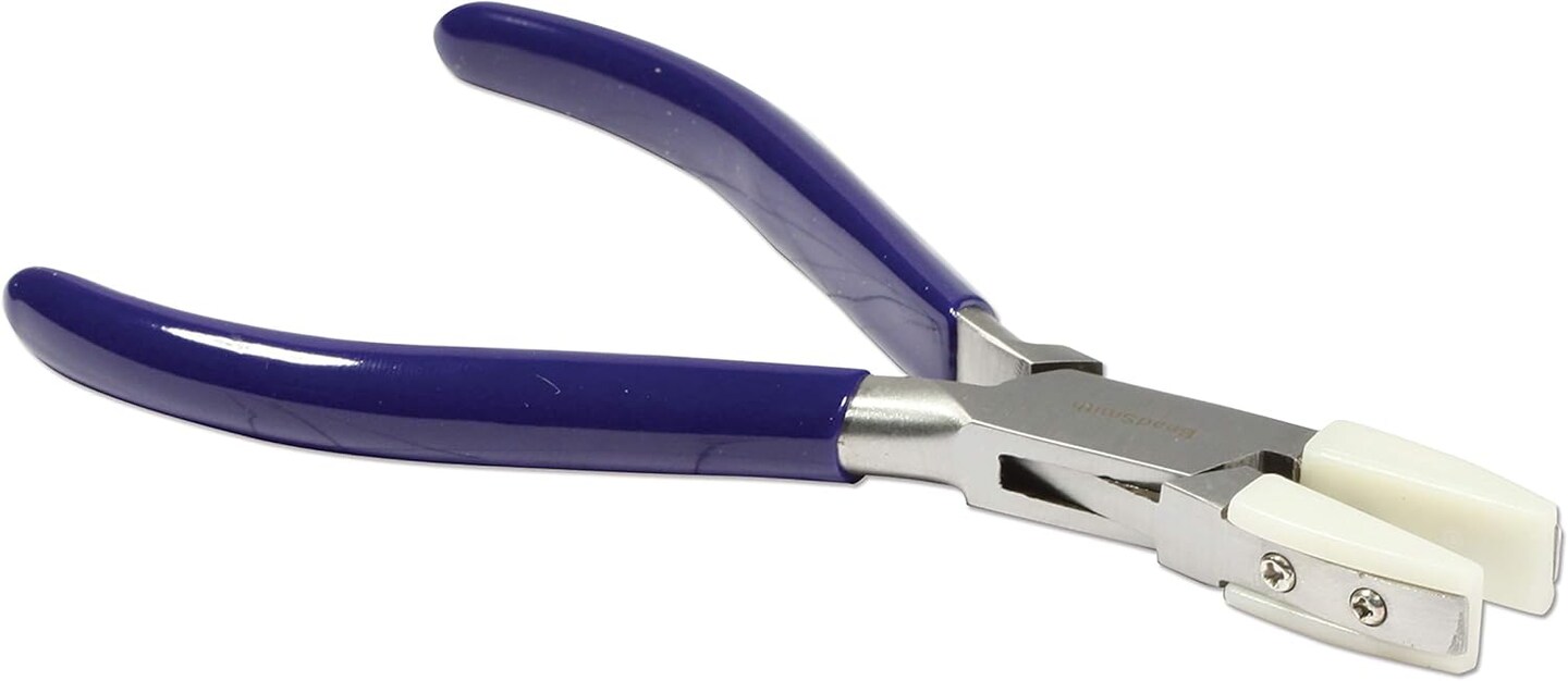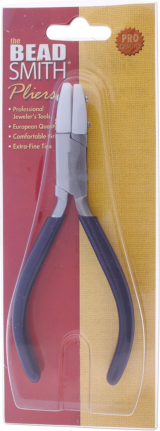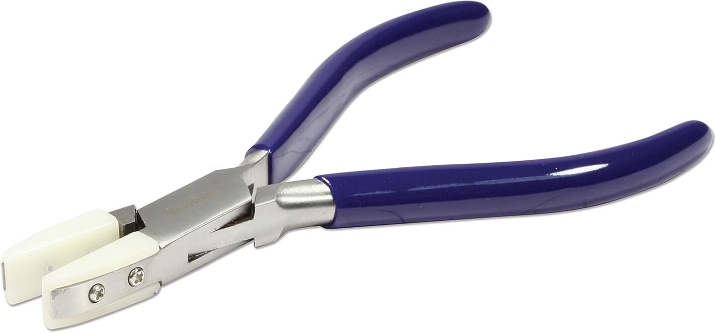 The Beadsmith Non-Marring Double Nylon Jaw Flat Nose Plier, 5.5 inches (140mm), Blue PVC grip, no spring, tool for protecting and straightening wire