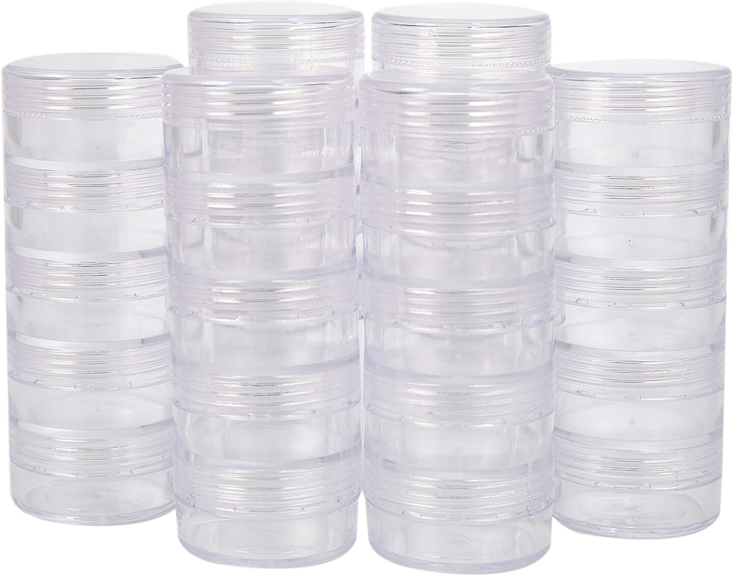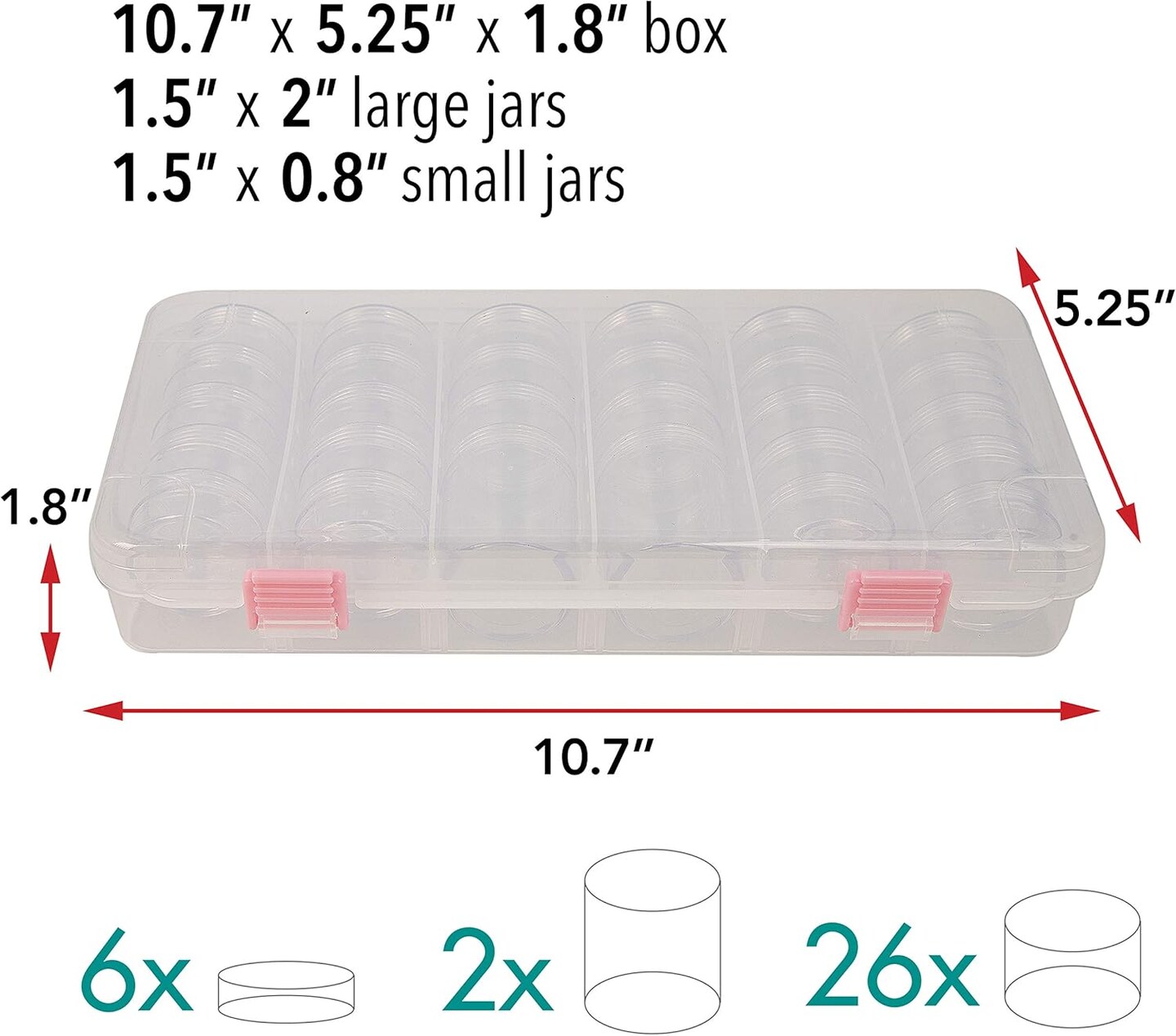 The Beadsmith Personality Case, Clear Plastic Bead Storage Case with 28 Removable and Stackable Jars, Includes 6 Screw top lids, Organizer Storage for Beads, Snap Lock Case for Jewelry and Crafts