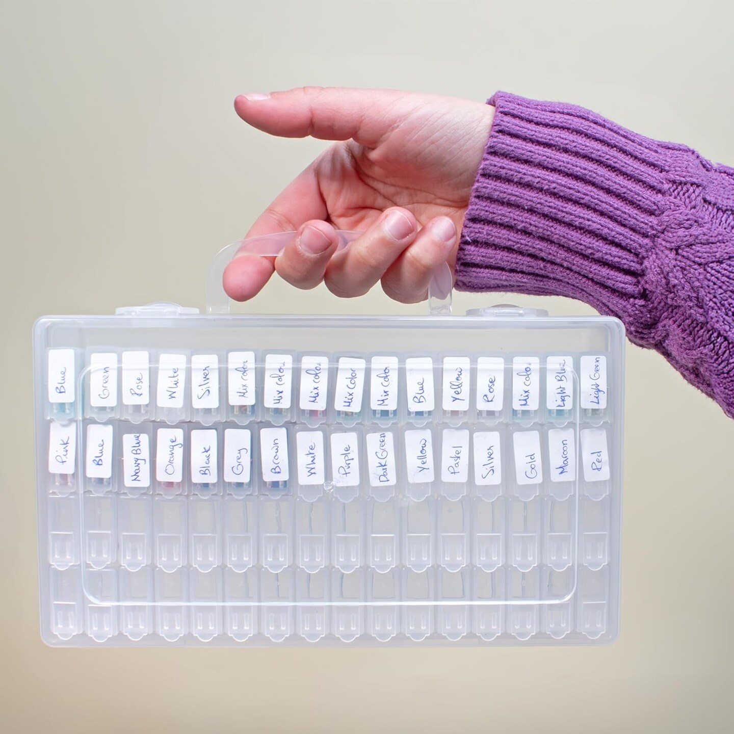 The Beadsmith Personality Case - Clear Storage Carrying Case 8.5 x 5 inches - and 64 flip top Boxes 1 x 2 inches Each, Includes Labels, for organizing and Storage