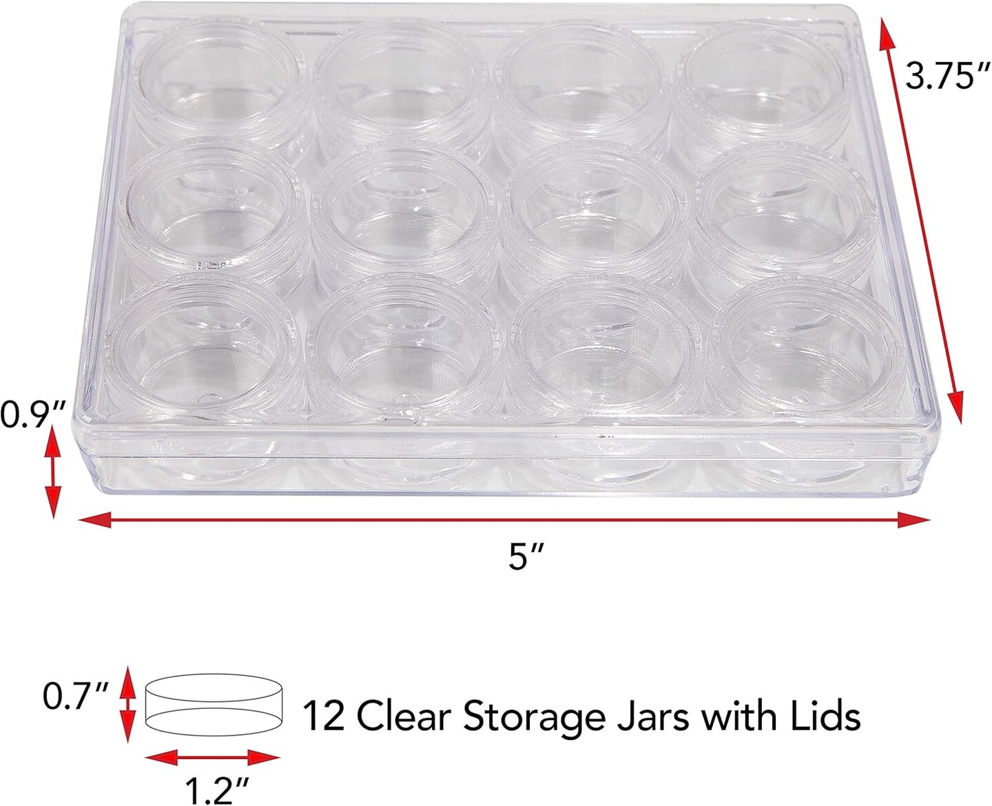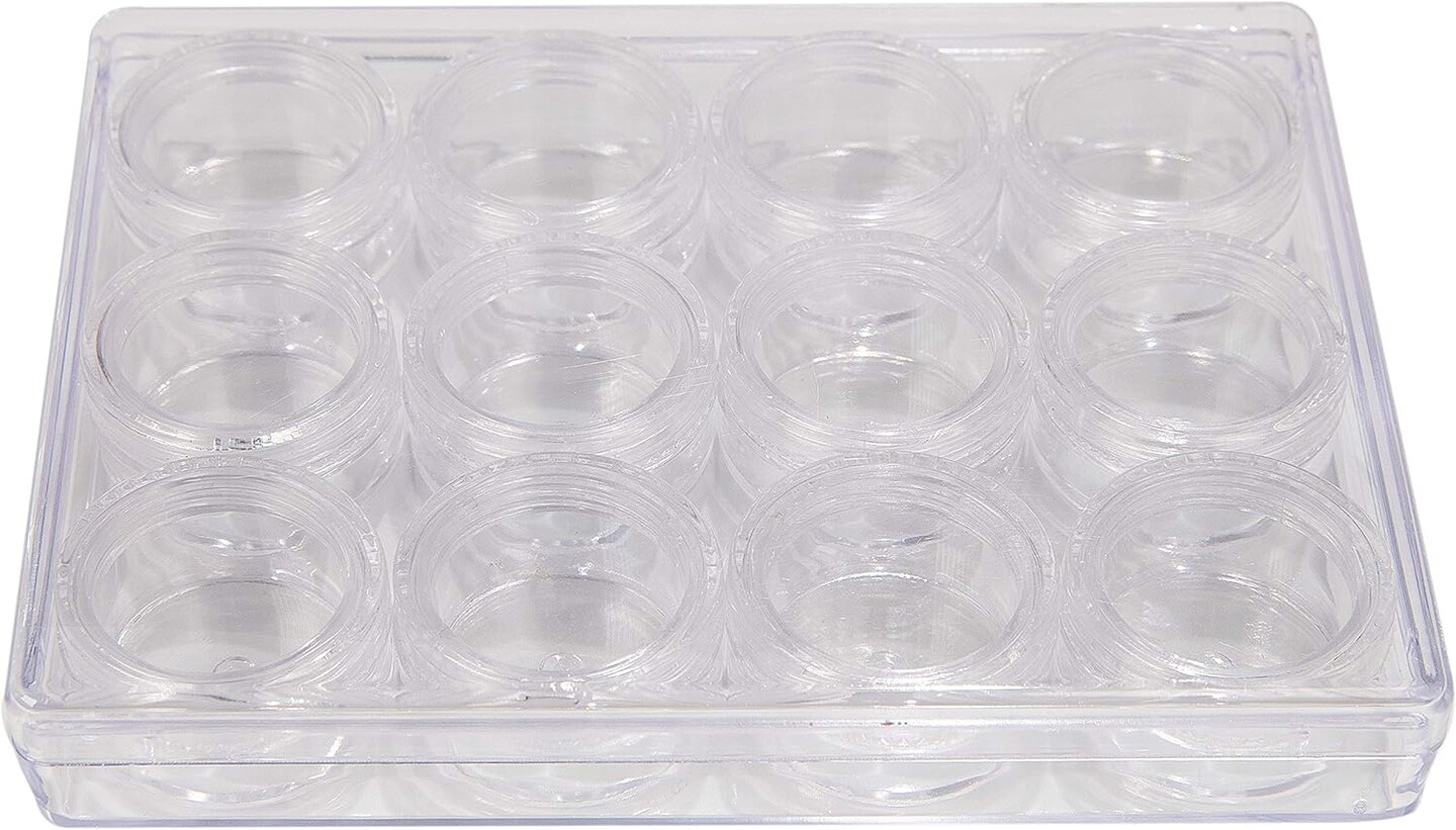 The Beadsmith Personality Case - Clear Storage Organizer Box, 5 x 3.75 x 0.9 inches - Includes 12 Small Containers with lids - 1.2 x 0.7 inches, Bead Holder