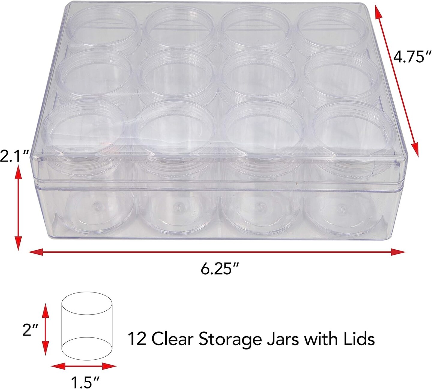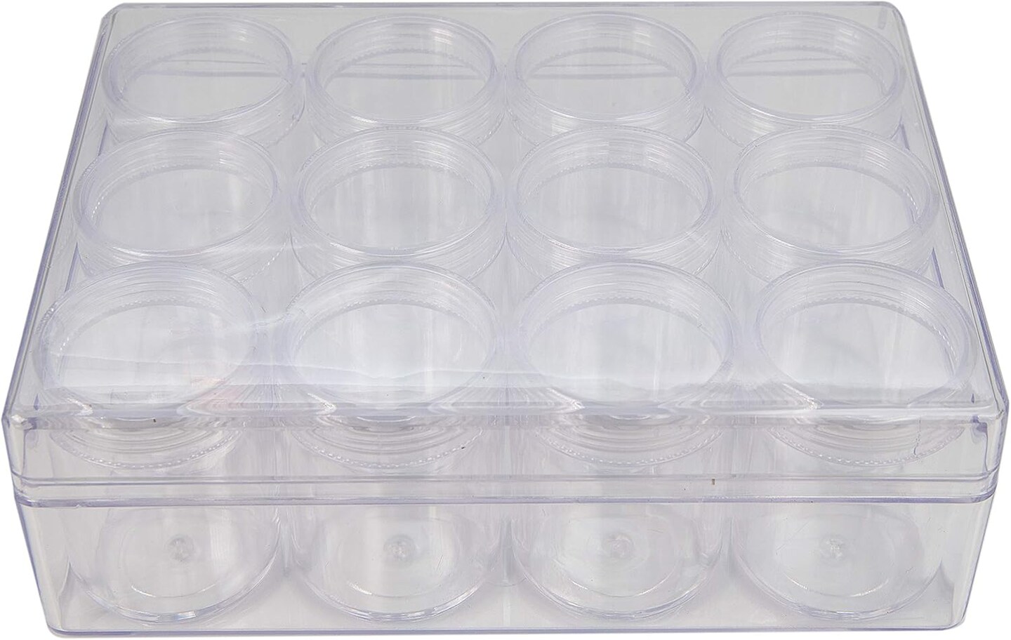 The Beadsmith Personality Case - Clear Storage Organizer Box, 6.25 x 4.75 x 2.1 inches - Includes 12 Small Containers with lids - 1.5 x 2 inches, Bead Holder