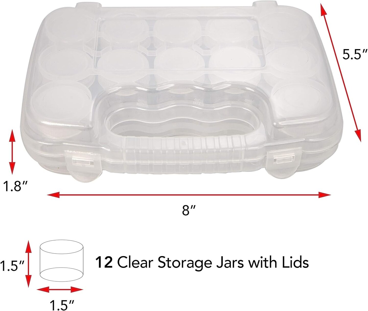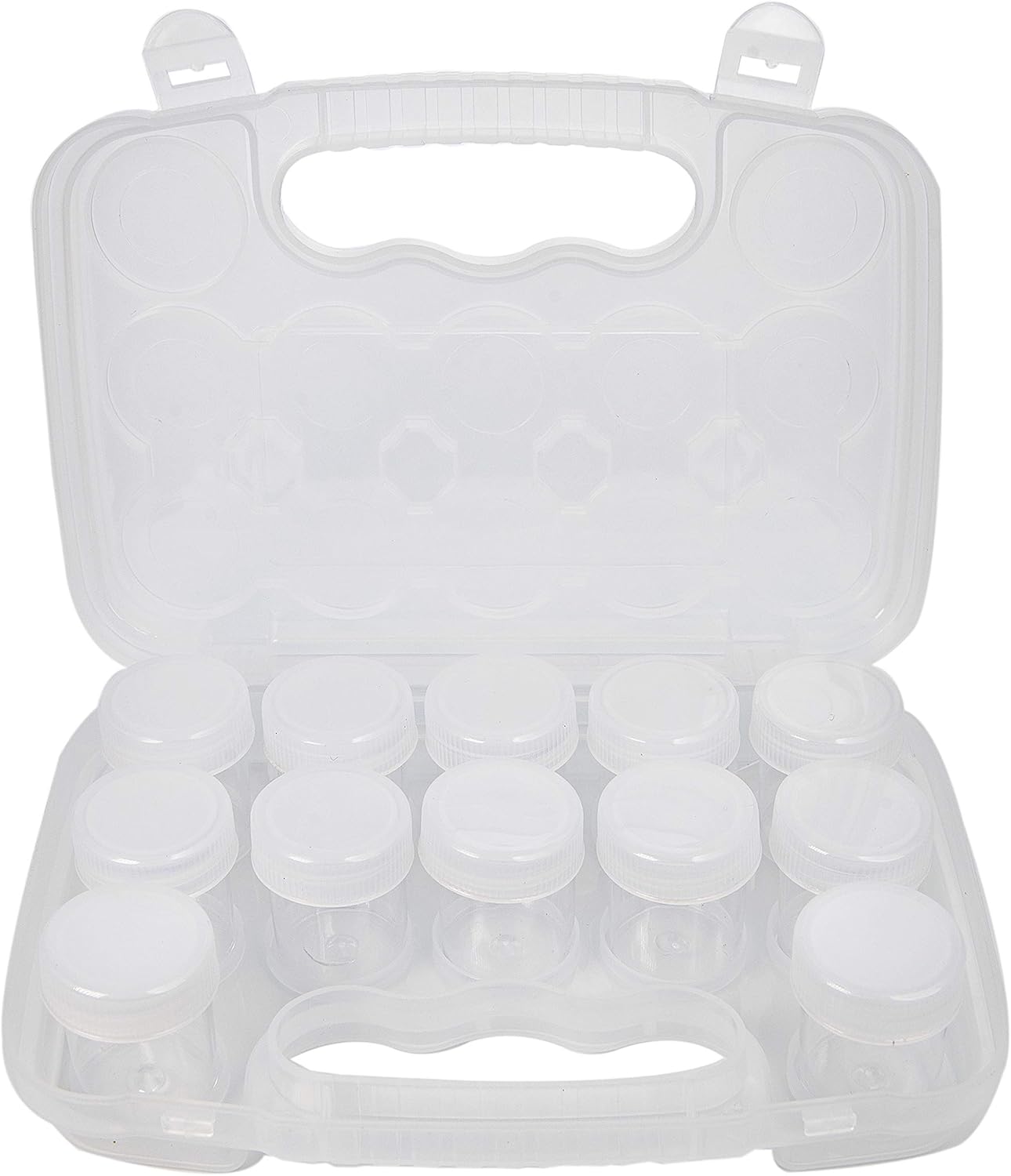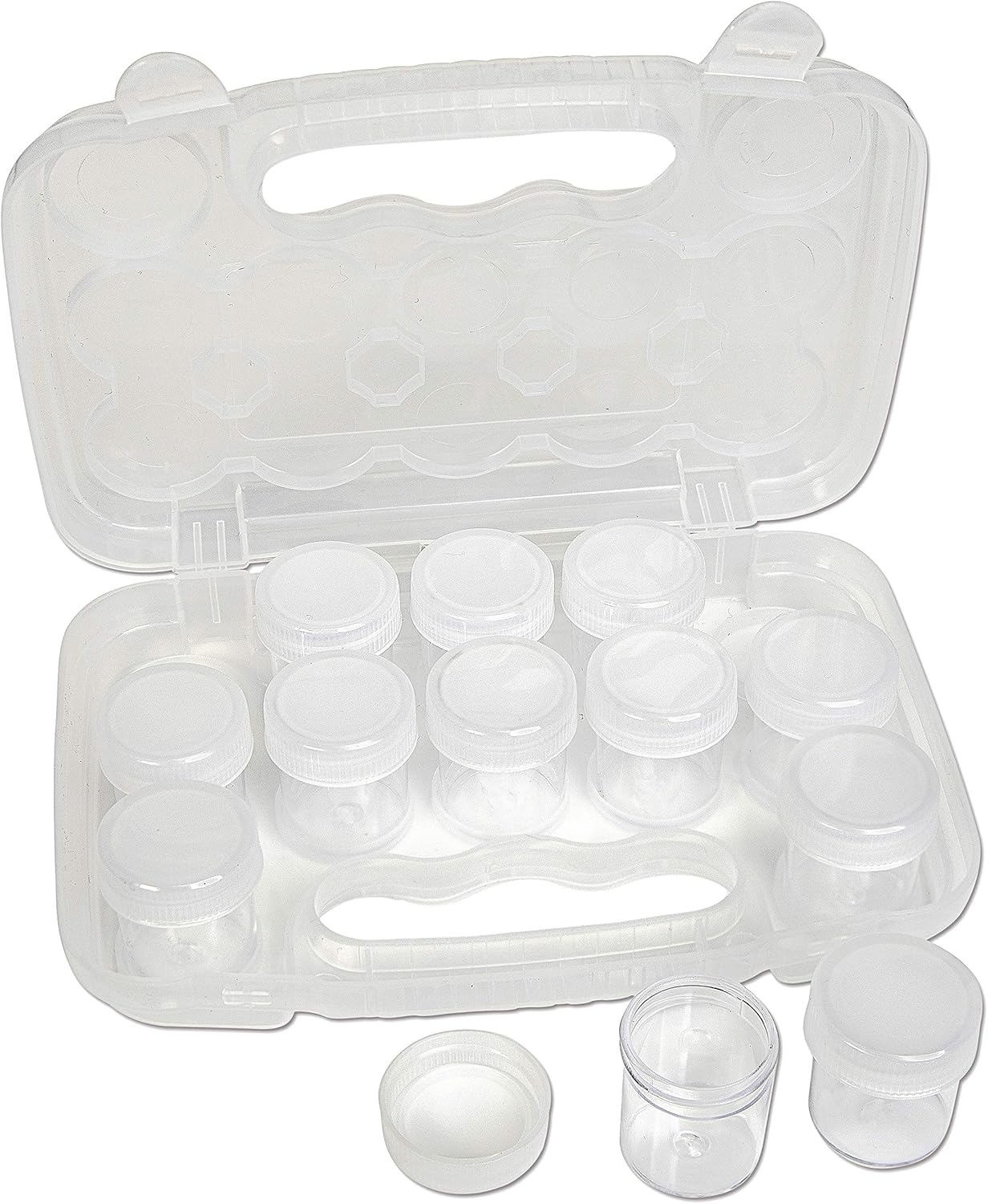 The Beadsmith Personality Case - Clear Storage Organizer Box, 8 x 8.5 x 1.75 inches - Includes 12 Small Containers with lids – 1.5 x 1.5 inches, Molded Case with Built-In Handle