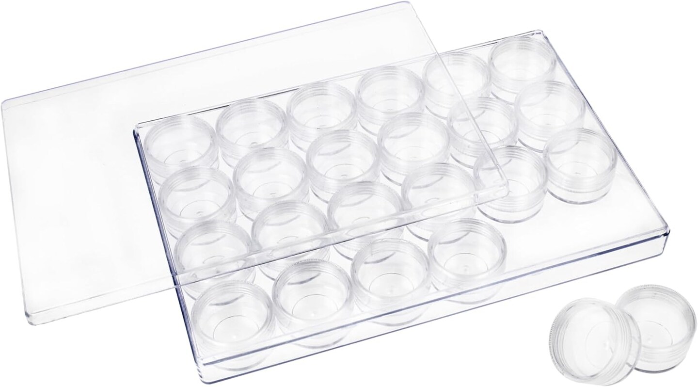 The Beadsmith Personality Case - Clear Storage Organizer Box, 9.5 x 6.4 inches - Includes 24 Small Containers with lids – 1.5 x 0.8 inches, Bead Holder