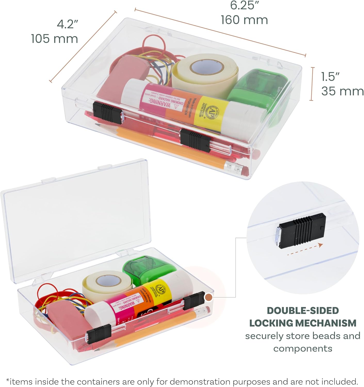 The Beadsmith Plastic Storage Box – 6.25″ L × 4.2″ W × 1.5″ H Clear Organizer Case with Secure Sliding Latches, Suitable As a Tool Box or Storing Stationery, Craft Supplies, Nail Art Tools & More