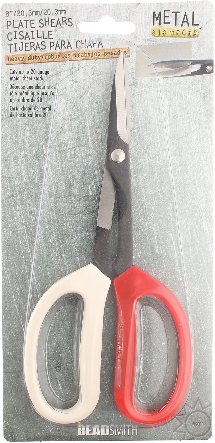 The Beadsmith Plate Shears – Metal Elements – Heavy Duty Scissors – Made of Carbon Steel – 8 Inches/20.3mm Long, 1.75in/44.45mm Cutting Blades – Cuts Up to 20 Gauge Metal Sheet Stock
