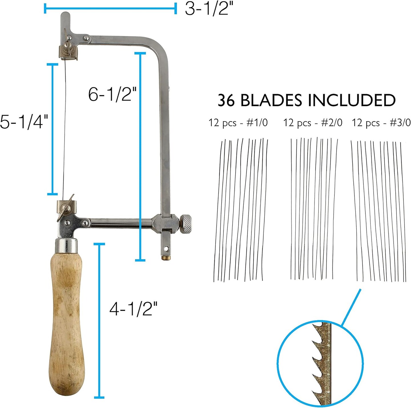 The Beadsmith Saw Frame – Basic Elements – Adjustable, German Style – Includes 36 Blades, Sizes #1/0, #2/0, #3/0 – Jewelry Saw for Metalsmiths, Woodworking, Soldering, Arts & Crafts and DIY Hobbies