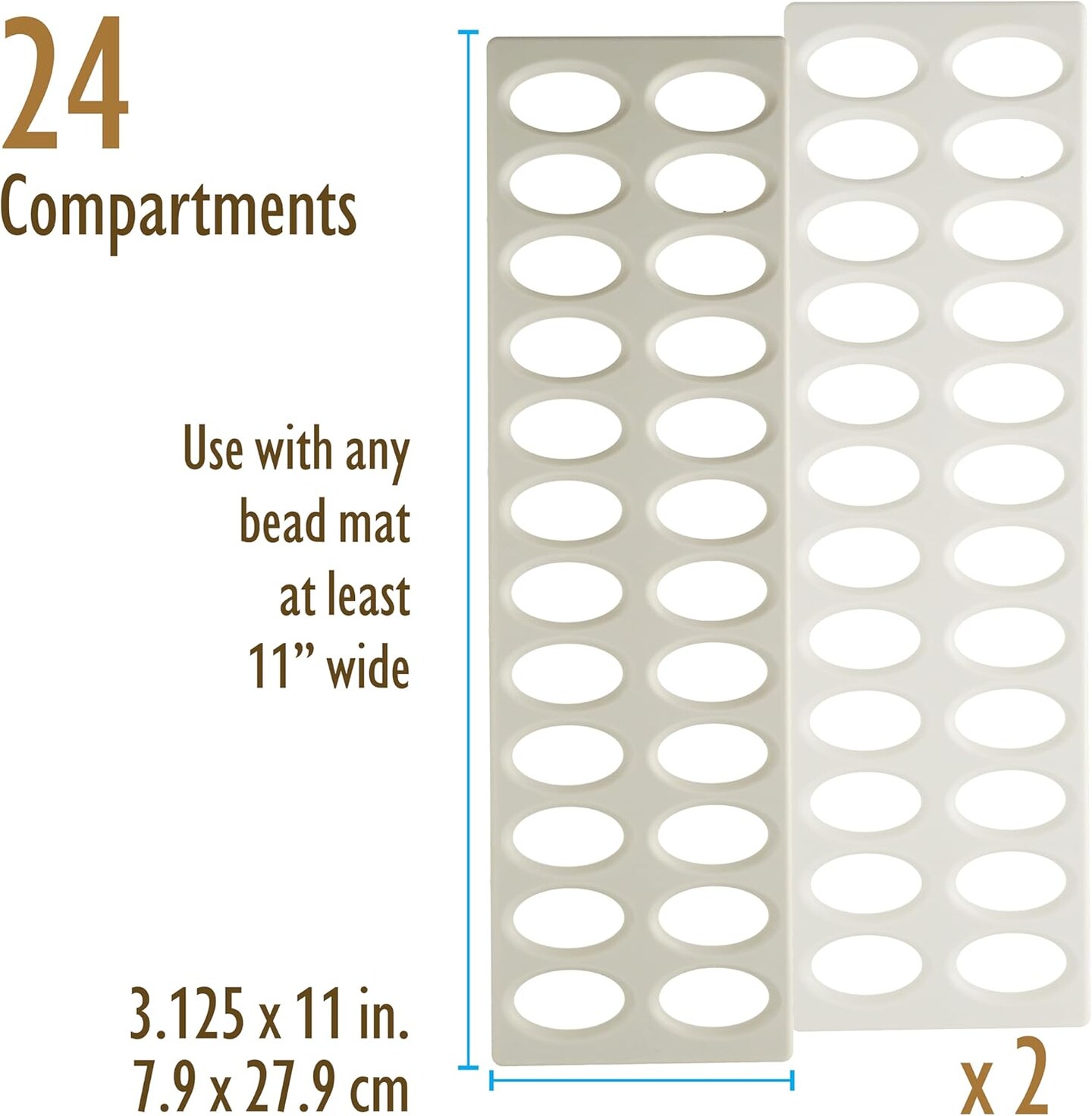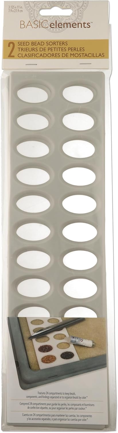 The Beadsmith Seed Bead Project Sorter – Basic Elements – 24 Holes – 11” x 3.13” x .12” – 2 Trays Per Pack – Use with Bead Mats to Create Compartments to Keep Seed Beads Organized