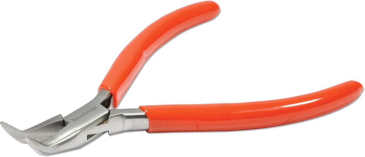 The Beadsmith Slim Line Chain Nose Pliers, with Polished Steel Head, red PVC Comfort Grip Handle with Double-Leaf Spring, Tool for Jewelry Making