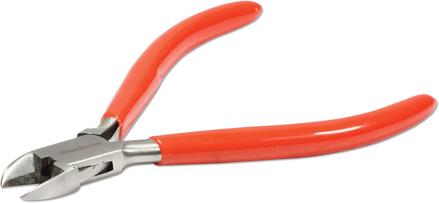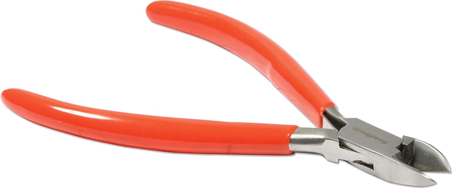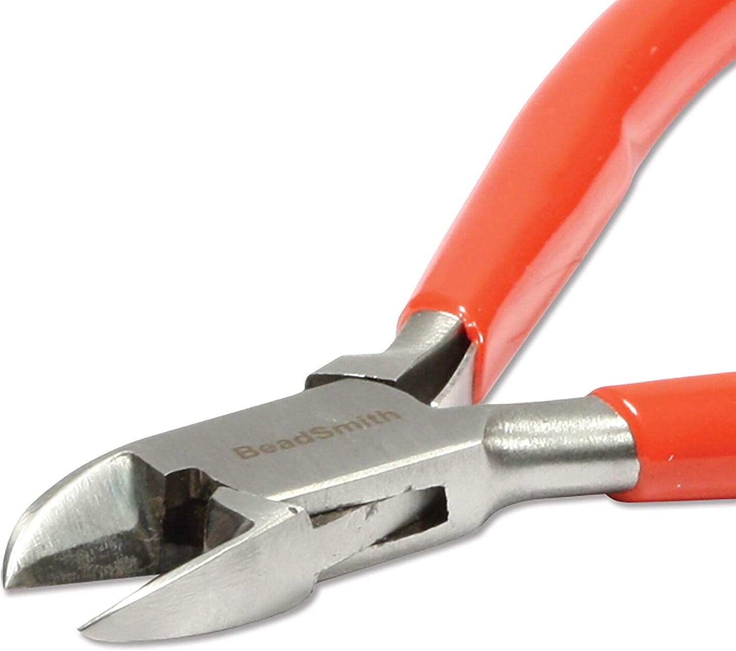 The Beadsmith Slim Line Sidecutter, 4.75 inches (120mm) with polished steel head, red PVC comfort grip handle with double-leaf spring, tool for jewelry making