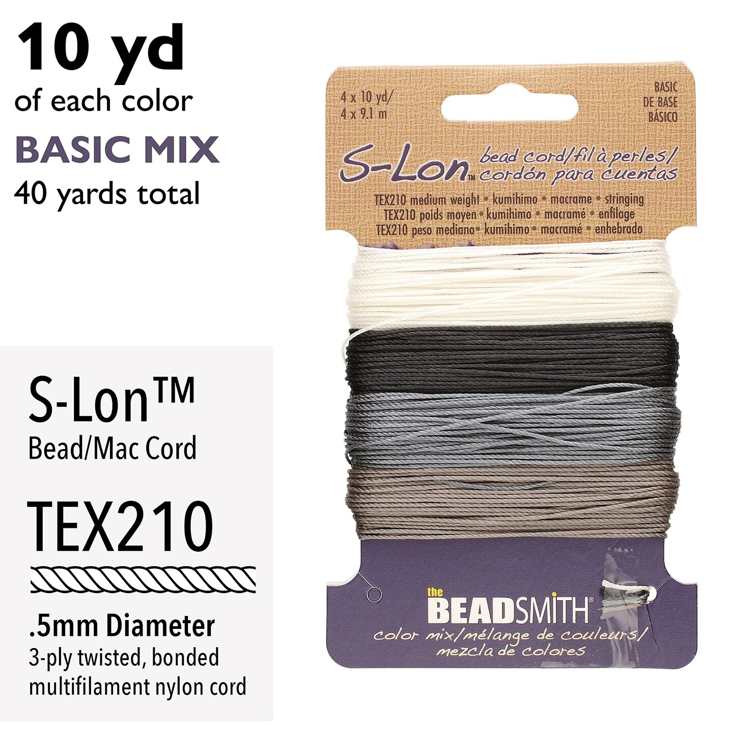 The Beadsmith S-Lon Bead Cord – .5 mm Twisted Nylon Cord for Stringing, TEX210