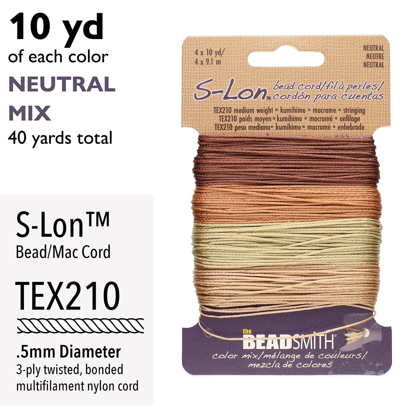 The Beadsmith S-Lon Bead Cord – .5 mm Twisted Nylon Cord for Stringing, TEX210