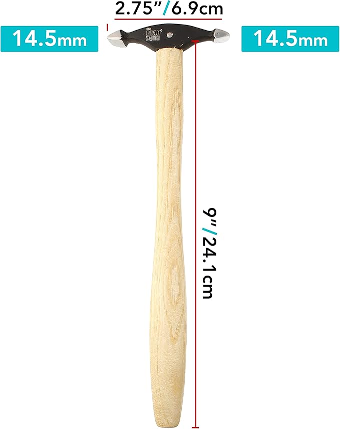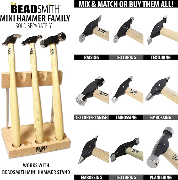 The Beadsmith Small Raising Hammer - 9 inches Wooden Handle, 65mm, 1.7oz Steel Head with Two Faces (2x13mm & 6x13mm) - Tool Used to Add Texture and Dimension to Metalwork