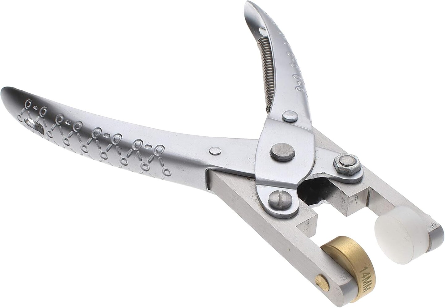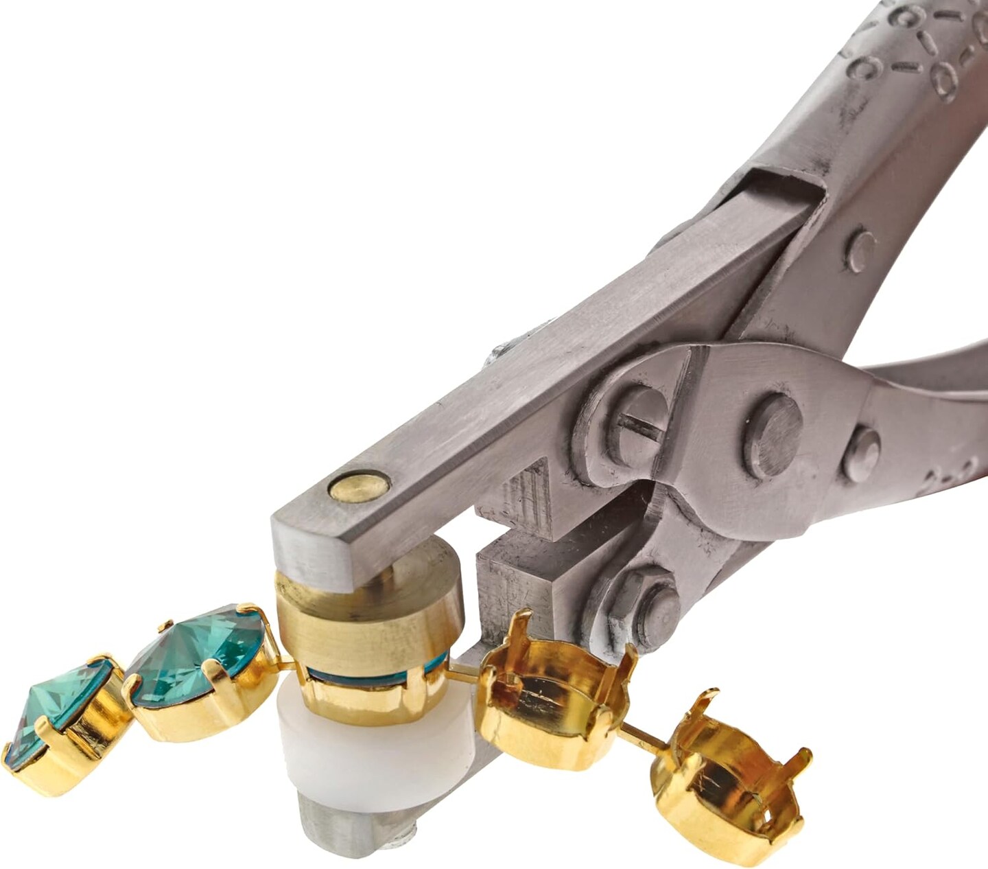 The Beadsmith Smart Setter Parallel Pliers – 5” Cup Chain Tool for Gemstone Setting, Polished Steel, 5 Brass Setting Heads Sizes (14mm, 12mm, 11mm, 8.5mm, 6mm) & 12mm Plastic Head