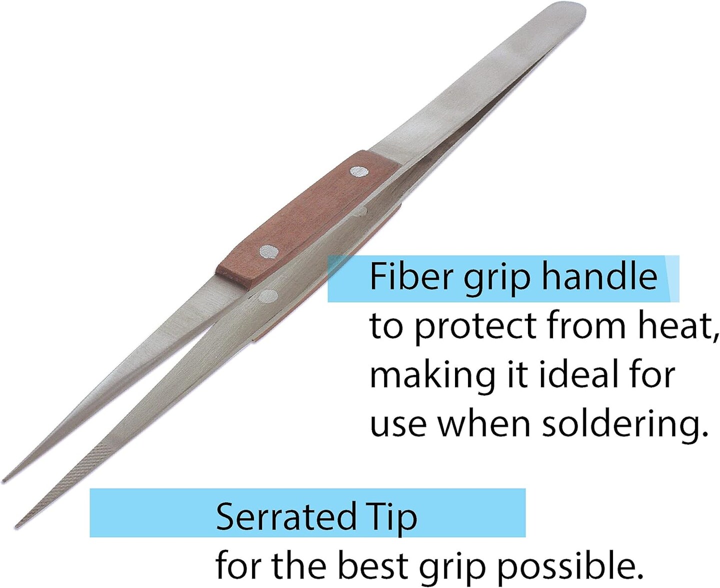 The Beadsmith Soldering Tweezers – 6.5 inches Long – Serrated Tip – Fiber Grip Handle – Precision Tool for Handling Stones During Soldering and Jewelry Making